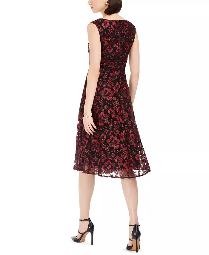 Taylor Women's Floral-Embroidered Midi Dress Wine Size 6