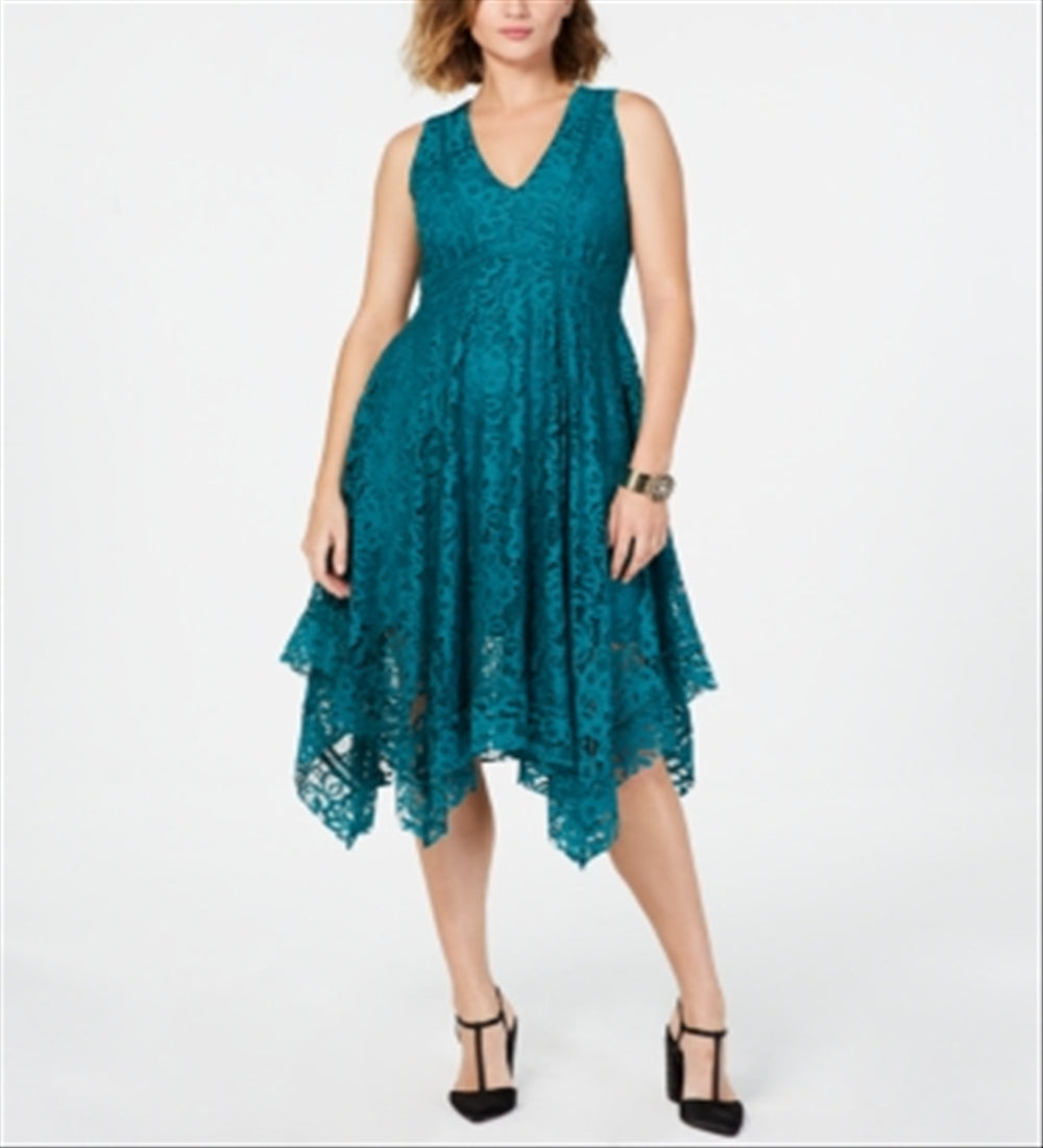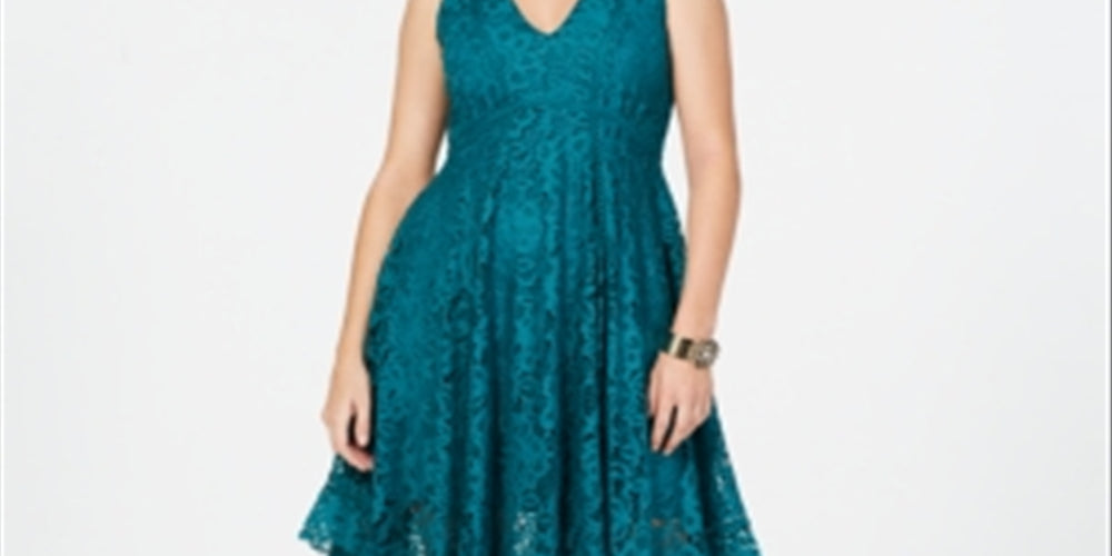 Taylor Women's V Neck Lace Midi Dress Green Size 6