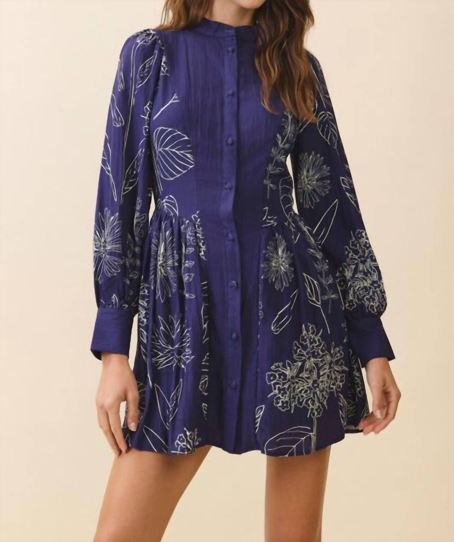 The kind of easy and flattering dress you'll be reaching for all season long. Embrace the vibrant patterns of the Long Sleeve Button Front Dress by TCEC in a stunning navy botanical print. This women's mini dress features an A-line silhouette with a crewneck and is perfect for a vacation or Mother's Day celebration during the spring season. Closure Type: Button closure. Care Instructions: Hand wash and line dry.