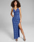 Teeze Me Women's Floral Sleeveless V Neck Tea Length Formal Sheath Dress Blue Size 0