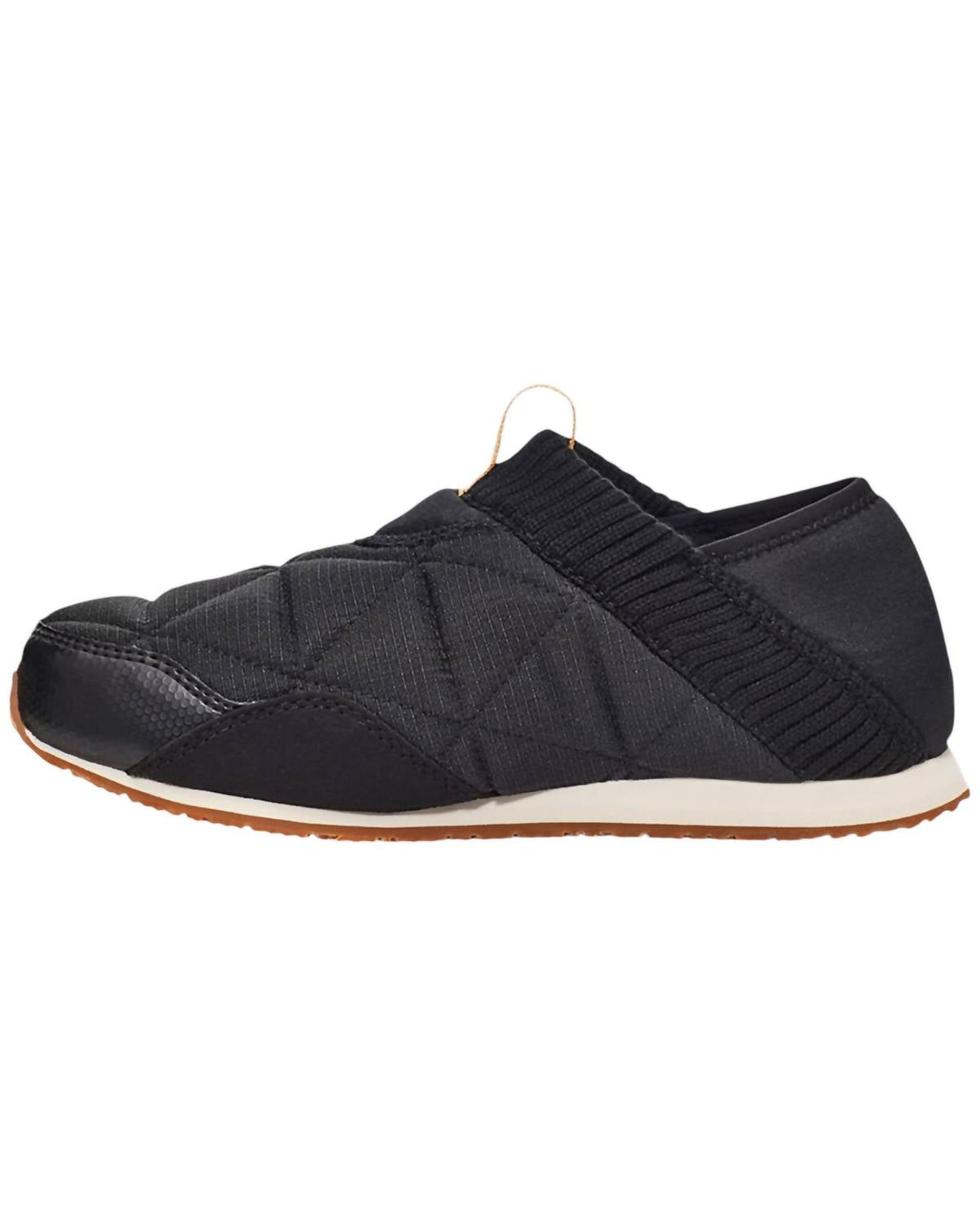 Cute, functional, and comfortable. These sneakers check all the boxes. Step into comfort with the Women's ReEmber Shoes by Teva, crafted from 100% recycled polyester for sustainable style. These versatile slip-ons in Black/Birch feature a water-repellent TevaRAPID RESIST coating, a rib knit collar, and a collapsible heel for effortless wear. The midsole and outsole are composed of 50% recycled EVA and rubber, ensuring lightweight comfort and traction. Care: Spot clean with mild detergent and air dry.