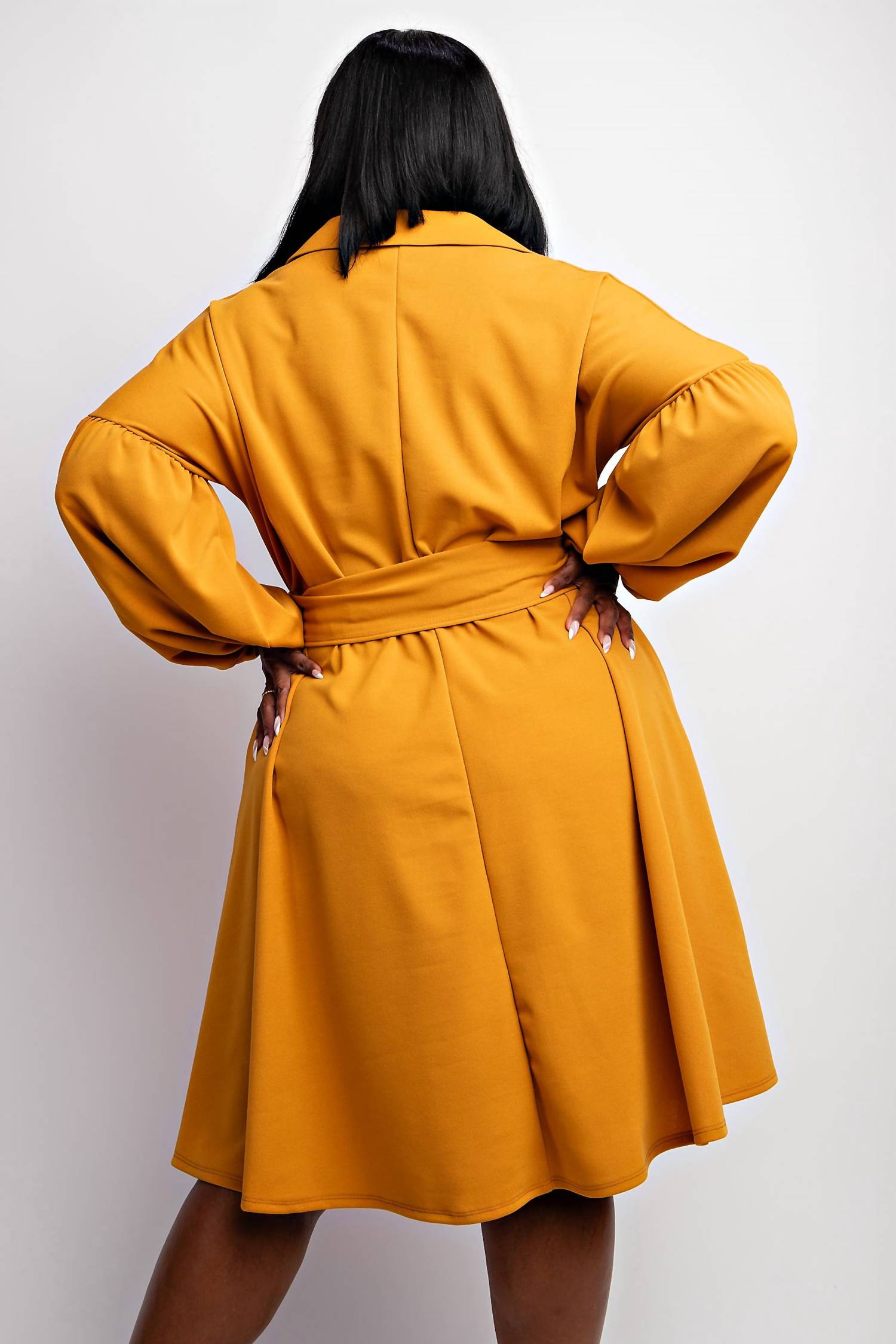 Discover timeless elegance with The Curve LA's Plus Size Button Front Fit And Flare Dress. This midi-length dress in a striking purple hue features long puff sleeves and a chic basic collar, perfect for any evening event. Crafted in the United States, the dress boasts a button-front closure, side pockets for practicality, and a flounce skirt that adds a hint of whimsy. Composition: Medium weight knit fabric. Closure: Button closure with a removable sash belt. Care: Machine wash.