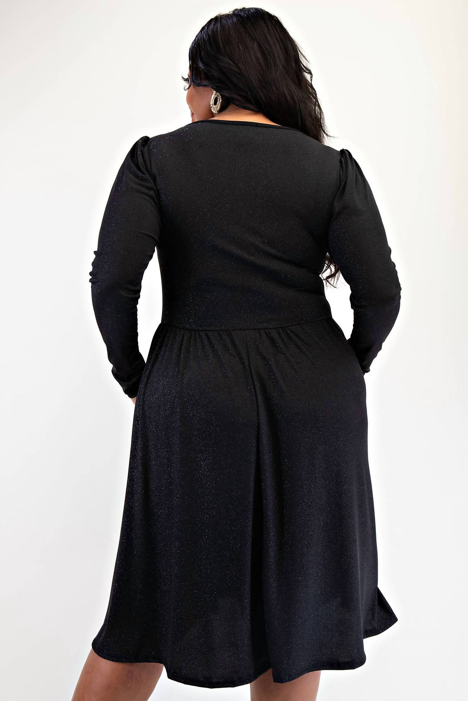 Just add slides or mules and you are good to go. Elevate your holiday wardrobe with this Plus Size Glitter Knit Flare Dress by The Curve LA, a striking piece in vibrant magenta. This knit dress showcases long puff sleeves and a flattering fit-and-flare silhouette, complete with a chic boatneck and three charming bows at the front. Made in the US with convenient side pockets, it reaches knee length and offers a pull-on closure for easy wear. Ensure care with machine wash instructions.