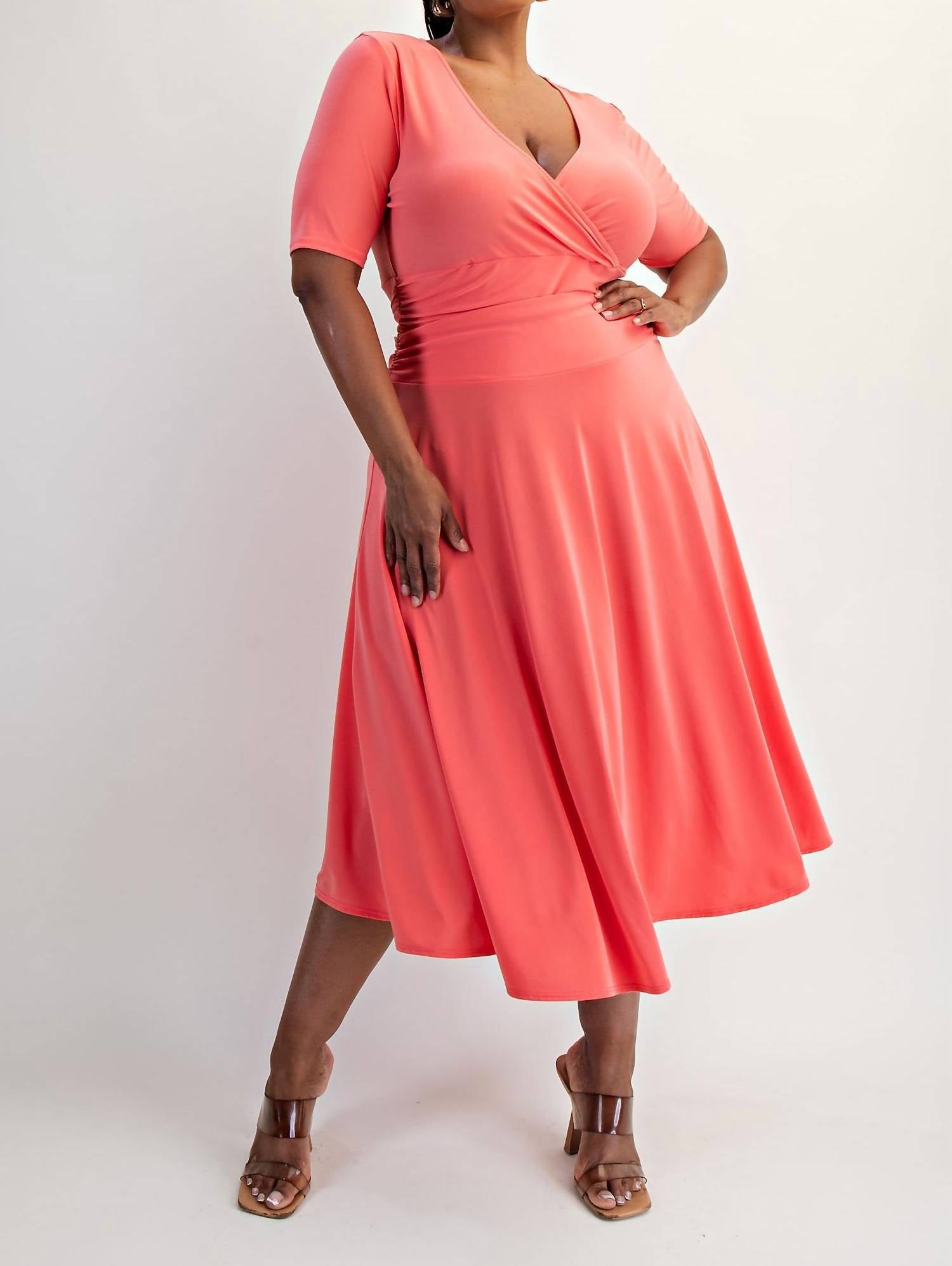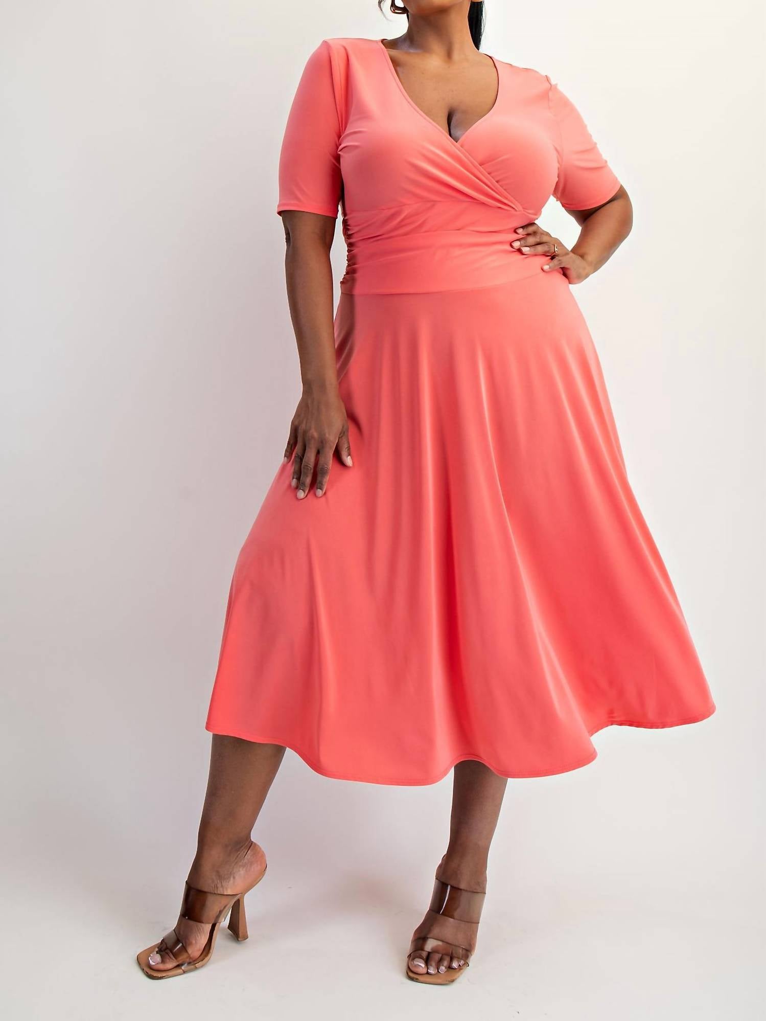 The Curve La - Plus Size Knit Surplice Midi Dress With Full Skirt