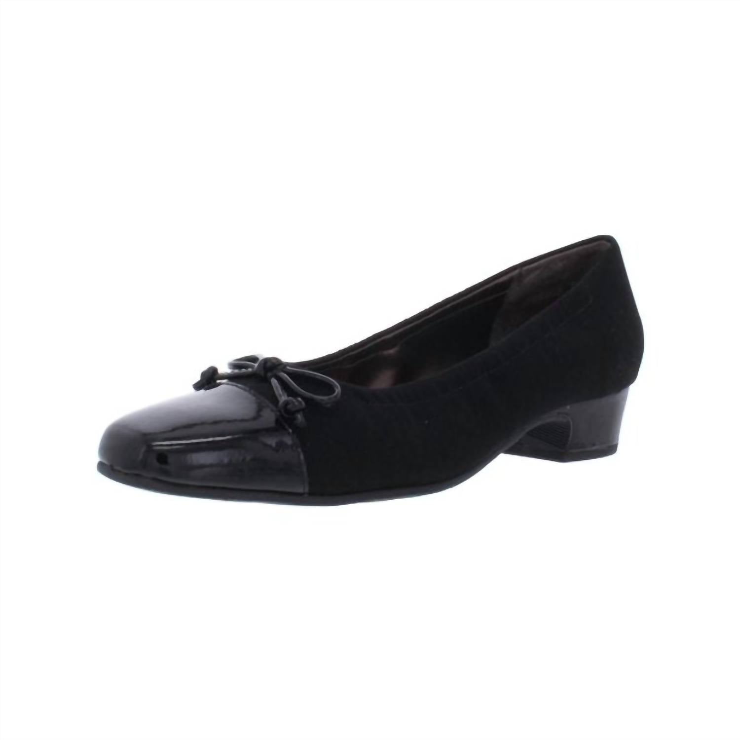 The perfect height for day to night. Step into timeless elegance with the Bradford Low Heel Slip-On Shoes by The Walking Cradle Co., crafted for all-day comfort. These black microfiber shoes feature a chic block heel, offering a trendy nod to 90s fashion while maintaining sophistication. Designed with a round toe, they provide ample room for comfort during all your spring events and Thanksgiving dinner parties. With a low heel height of 1 1/4" to 2", they are perfect for adding a subtle lift without compromising on ease.