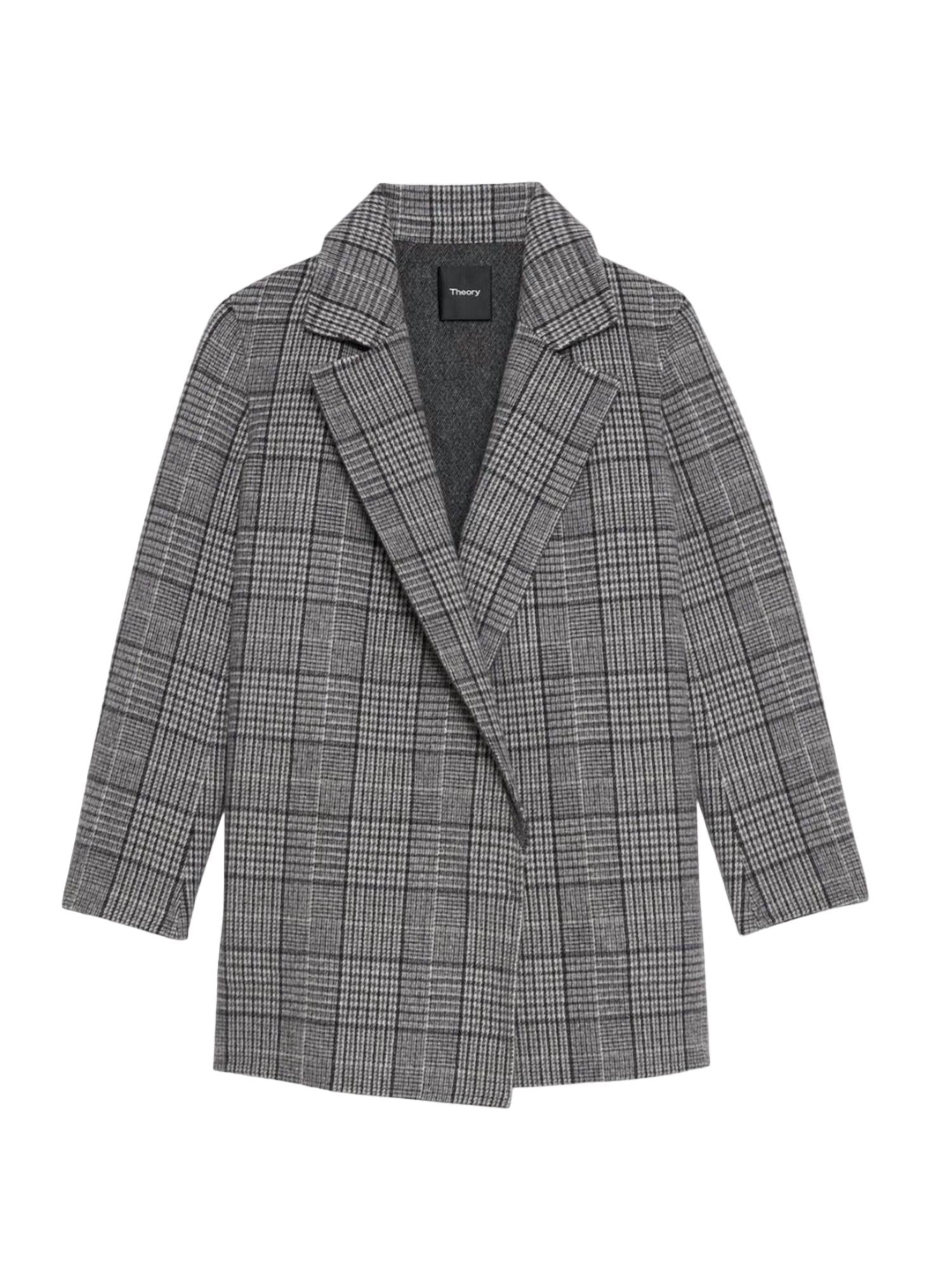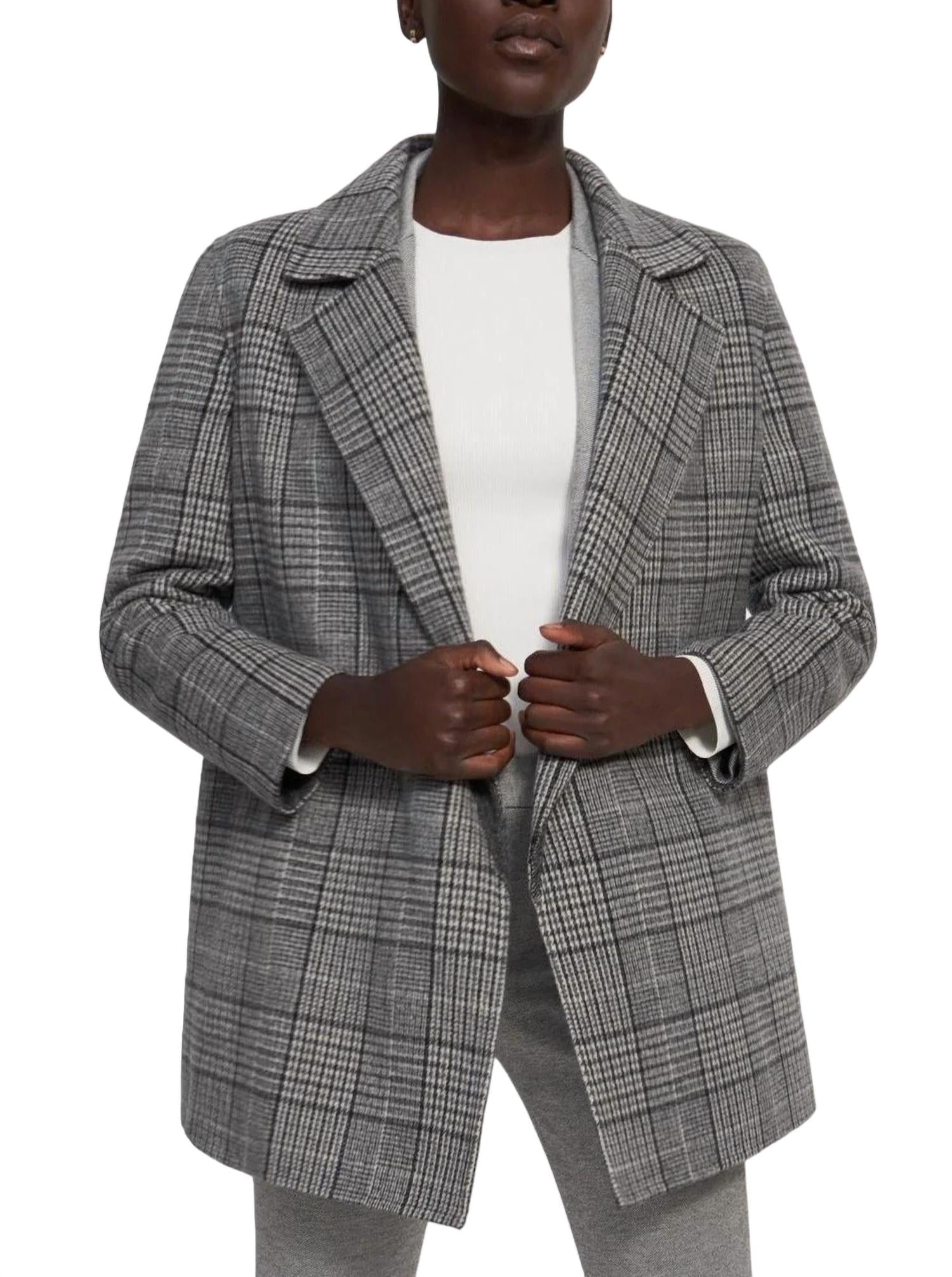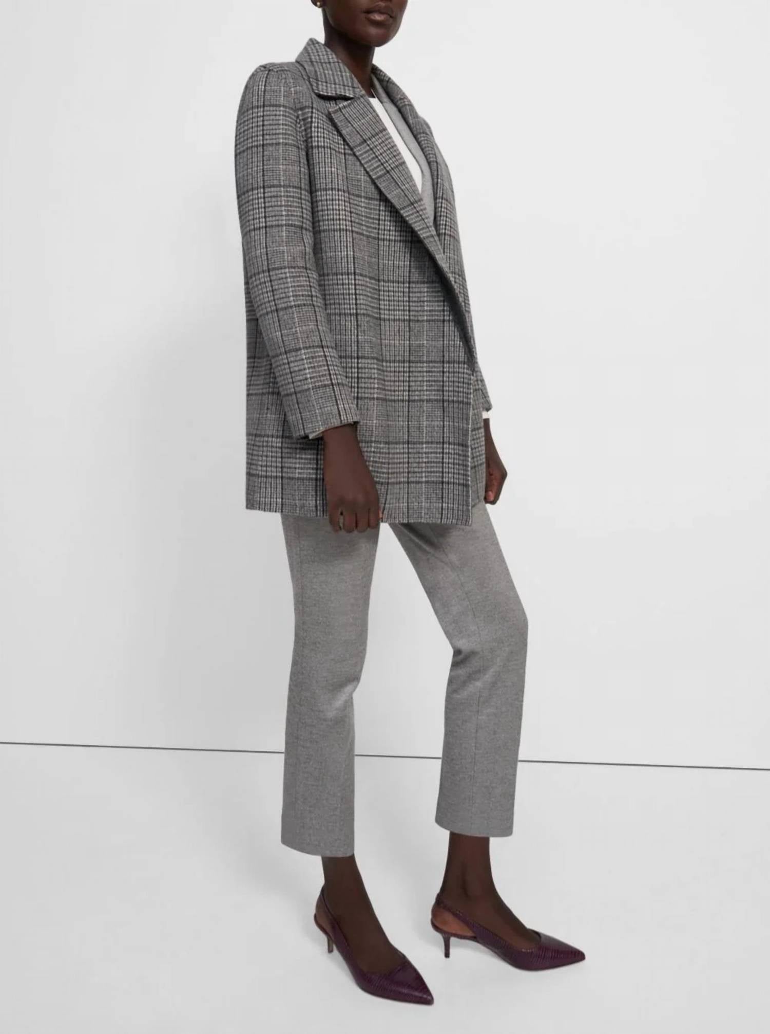 A blazer so versatile you can wear it to the office or pair it with jeans for a more casual look.Cut in a relaxed shape with slim bracelet sleeves, notched lapels, and side slip pockets. Open-front silhouette. Mid-thigh length. True to size. Model is 5’11” and wearing a US size S. Material: 90% Virgin Wool, 10% Recycled Cashmere. Dry clean.