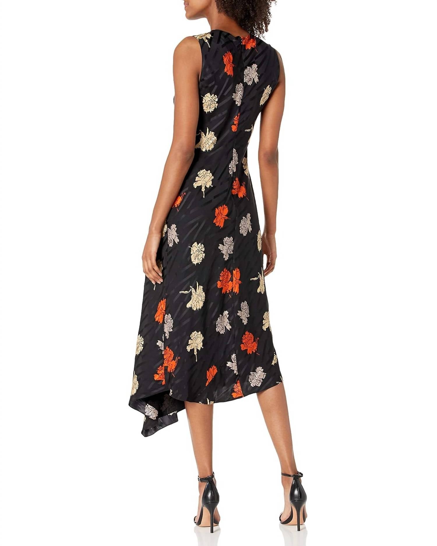 Experience the elegance of the Draped Tuck Silk Carnation Midi Floral Dress by Theory, where sophisticated design meets premium craftsmanship. This sleeveless dress is expertly crafted from 100% Silk and features a custom-designed carnation jacquard pattern for a touch of bespoke luxury. With a length ranging from 42" to 50", it offers a flattering midi silhouette enhanced by a tucked-in seam detail that gently drapes the waist. Originating from a dedication to quality, it closes with an invisible zipper and requires dry cleaning to maintain its pristine condition.
