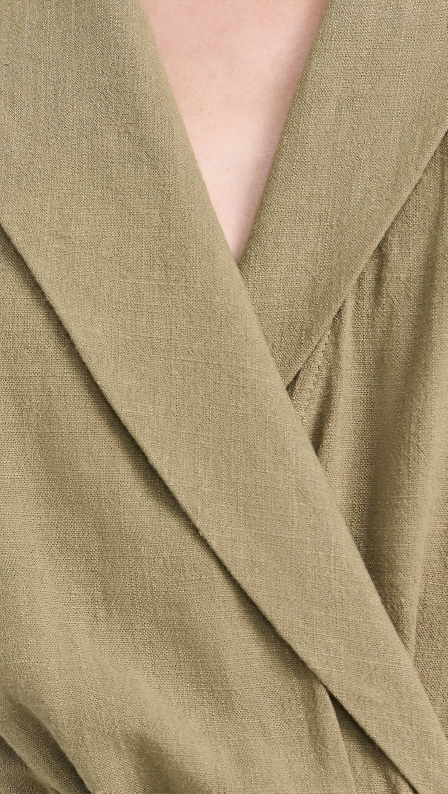 A maxi dress that is just as cute as it is comfortable. This Mayer Military Maxi Dress features a sleeveless A-line silhouette with a crossover neckline, thigh-high slit, and practical cargo pockets. Crafted from a lightweight 75% rayon, 25% linen blend, it includes a tie closure and elastic waistband for a customizable fit.