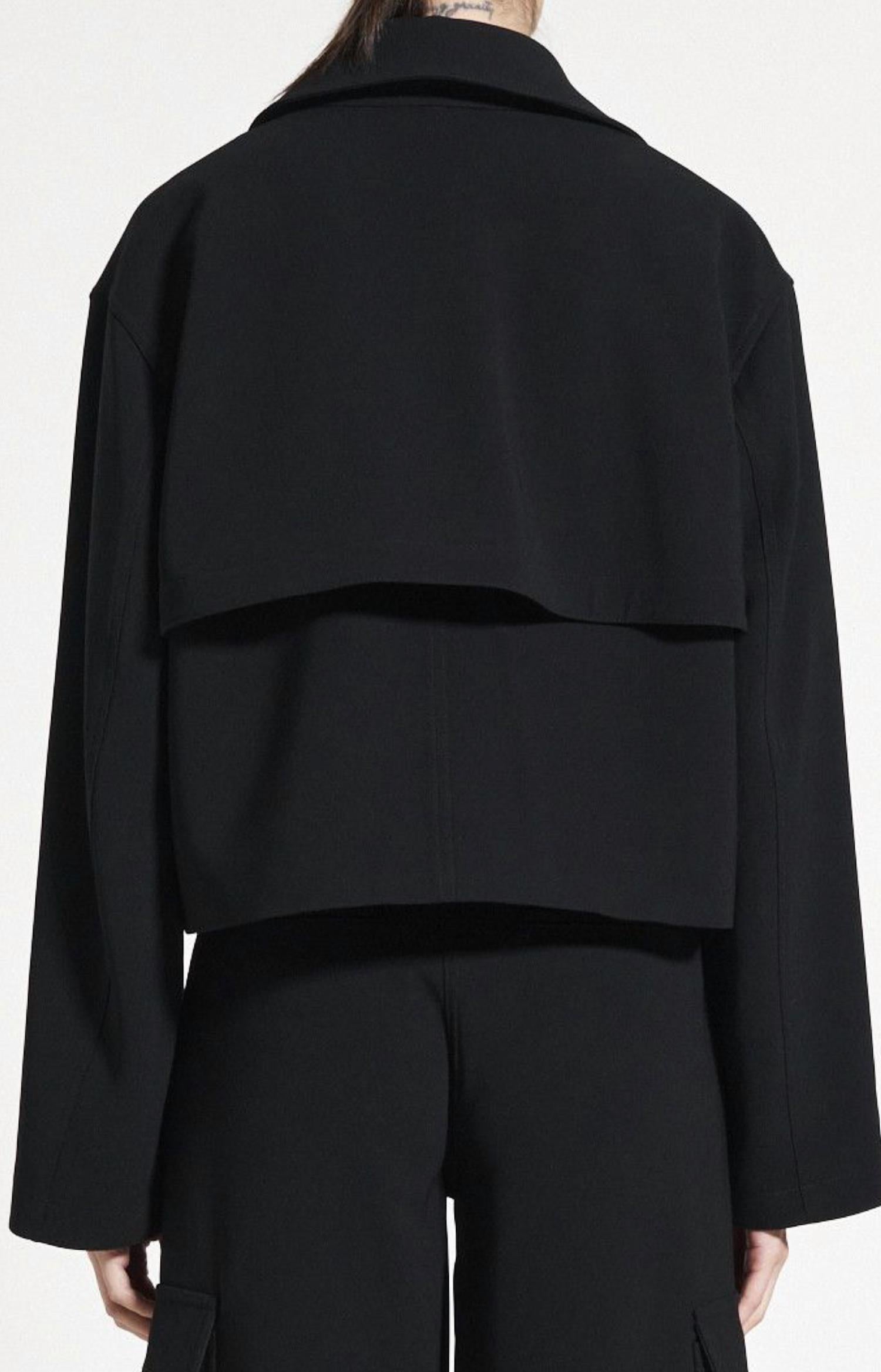 Elevate your outerwear collection with the Oversized Crop Trench by Theory, tailored for Women in a timeless Solid Black. This elegant trench features long sleeves and a classic collar, crafted from premium Polyester for a refined finish. Designed with a button closure and functional pockets, it offers both style and practicality. Care instructions: Dry Clean only.