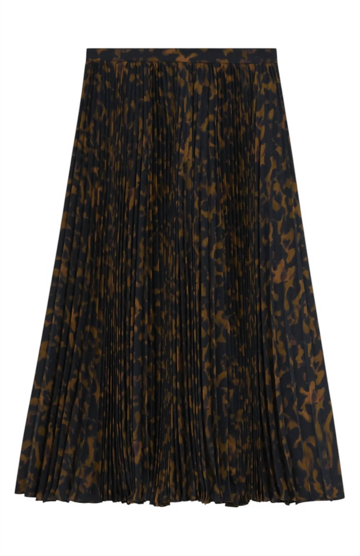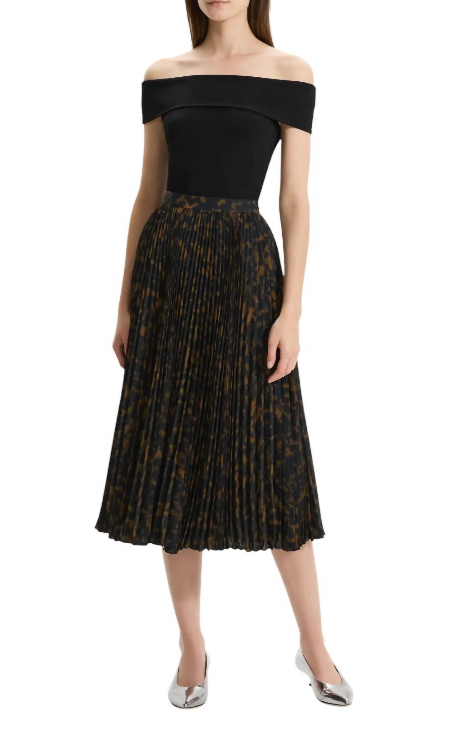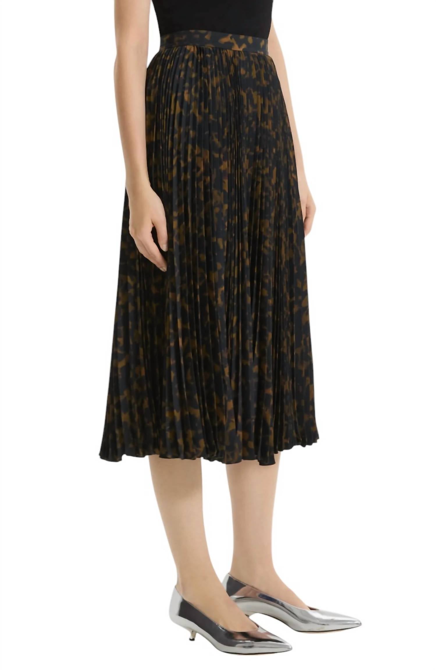 Tuck your favorite tee into this midi length skirt for an effortlessly cool look. Elevate your office attire with the Sunburst Skirt by Theory, offering a perfect blend of sophistication and modern style. This dark brown multi midi skirt features knife-sharp pleats and comes with a hidden back-zip closure for a seamless look. Crafted from 100% recycled polyester, its 32" length adds an elegant flow to your silhouette. Imported and fully lined, this skirt requires dry cleaning for maintenance.