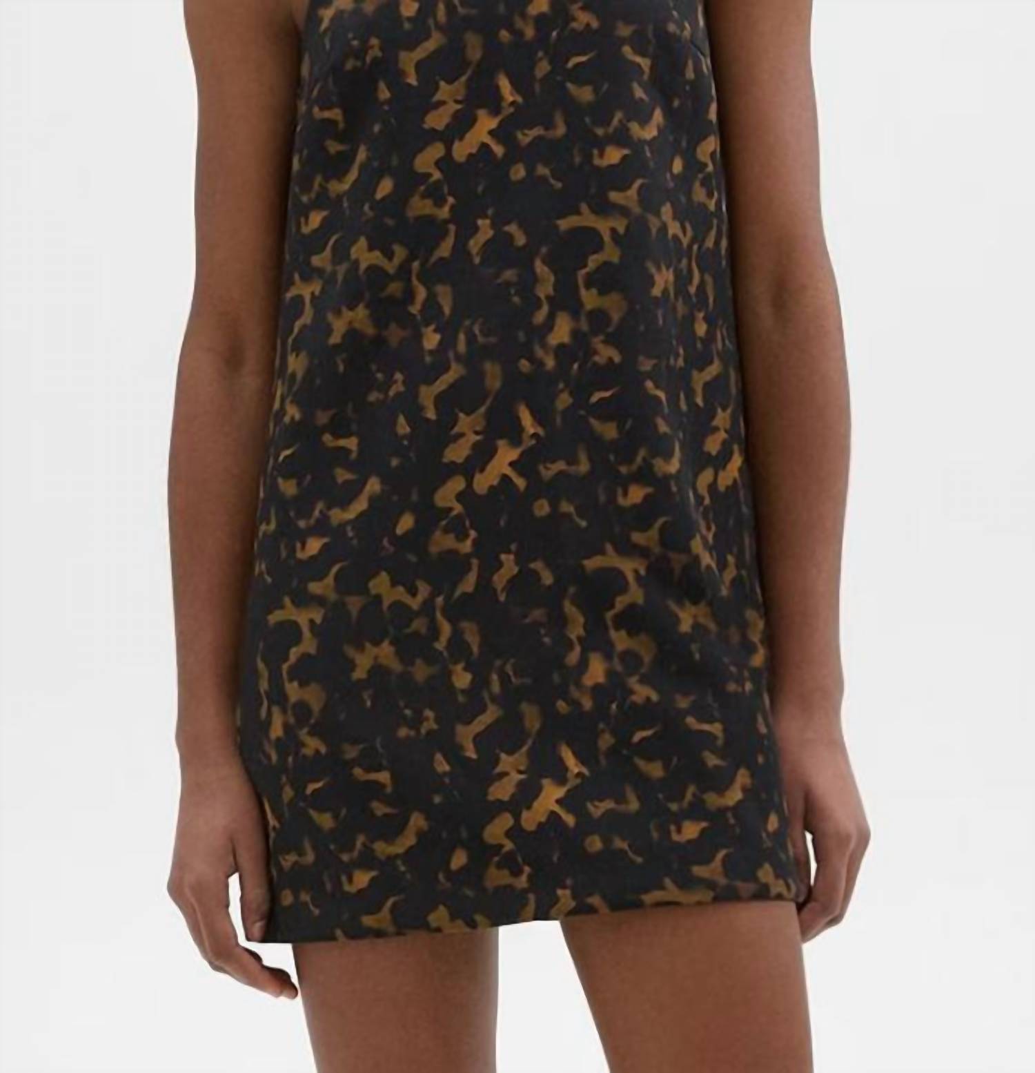 A short and breezy dress for those warmer days. Introducing the Tortoiseshell Printed Shift Dress by Theory, a chic piece designed for the modern woman. This sleeveless mini dress features a sheath silhouette and an eye-catching animal print in classic black. With a sophisticated mockneck, it offers a pull-on closure for effortless wear. Care is easy with machine washing and laying flat to dry.