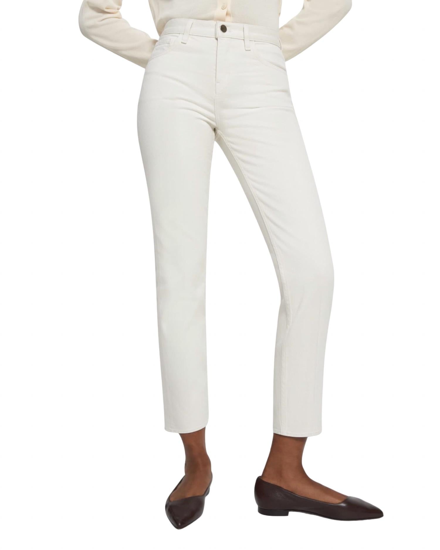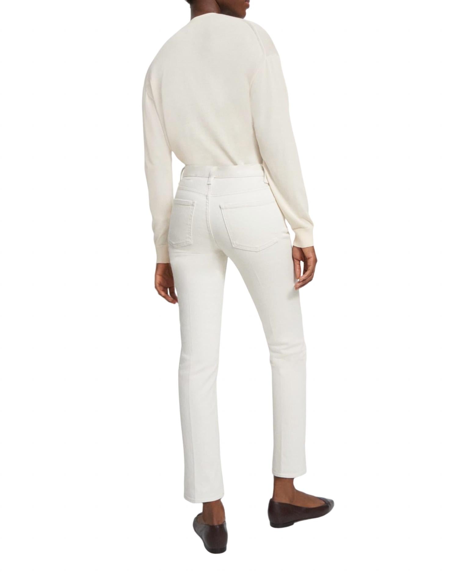 Enhance your wardrobe with this trendy cropped number, designed to blend style and practicality. The comfortable fit allows for easy all-day wear. The perfect length to pair with your favorite mules. Front hook and zip closure. Five-pocket styling. Belt loops. Back besom pocket. Crafted from new dyed denim. Mid rise, slim leg. Cropped length. Runs small. Model is 5’11” and wearing a US size 26. Composition: 98% Cotton 2% Polyurethane. Machine wash cold.