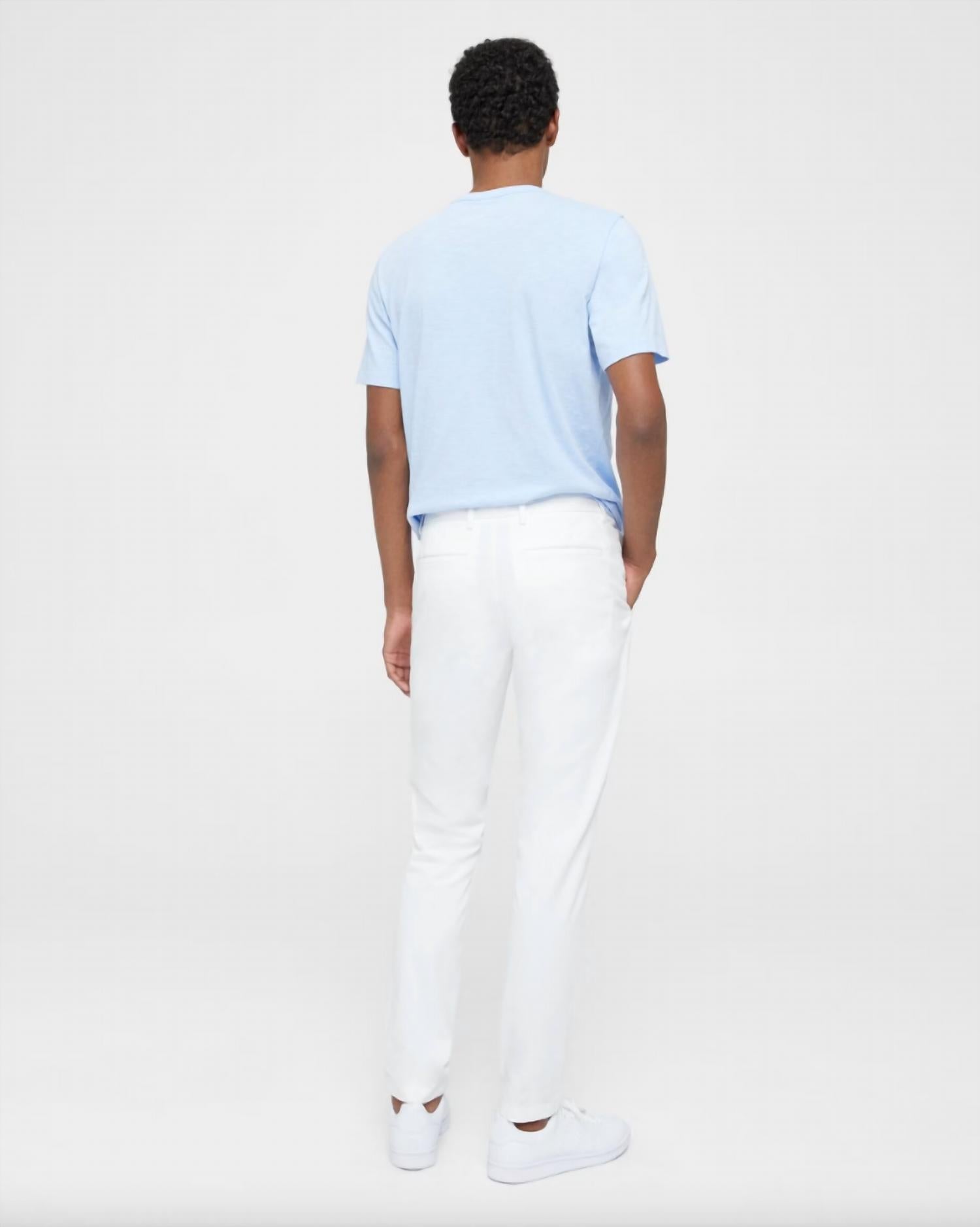 Perfect blend of comfort and sophistication. Crafted from 96% organic cotton and 4% elastane. Black chino-inspired pant offers a slim-straight fit with a mid-rise design. Features a practical zip fly with button closure and convenient pockets. Care is easy with machine wash cold on a gentle cycle and hang to dry instructions.