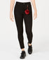 High rise; slim fit through hips and thighs; skinny leg|Approximate inseam: 27"|Front button closure with zipper fly; belt loops|Five-pocket styling; two back patch pockets|Clip-on pompom included; color may vary|Colored wash|Cotton/polyester/viscose/elastane