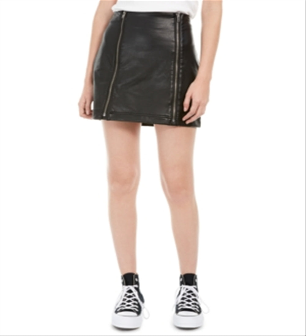 Tinseltown Women's Double Front Zipper Faux Leather Mini Skirt Black Size Medium