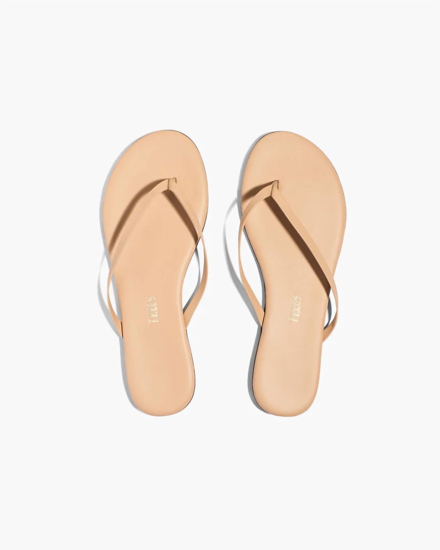 Classicly cute and all-day-wearable. We love this sandal. Discover the Women's Foundations Matte Sandals by TKEES in the stunning Sunkissed shade. Crafted in Brazil, these sandals feature a soft Brazilian leather upper and insole that ensure a luxurious fit, while the rubber outsole provides everyday comfort. Ideal for US whole sizes, we recommend sizing up if you're in between sizes. With a classic flip flop silhouette and flat heel, these sandals offer a chic yet comfortable choice for warm days.