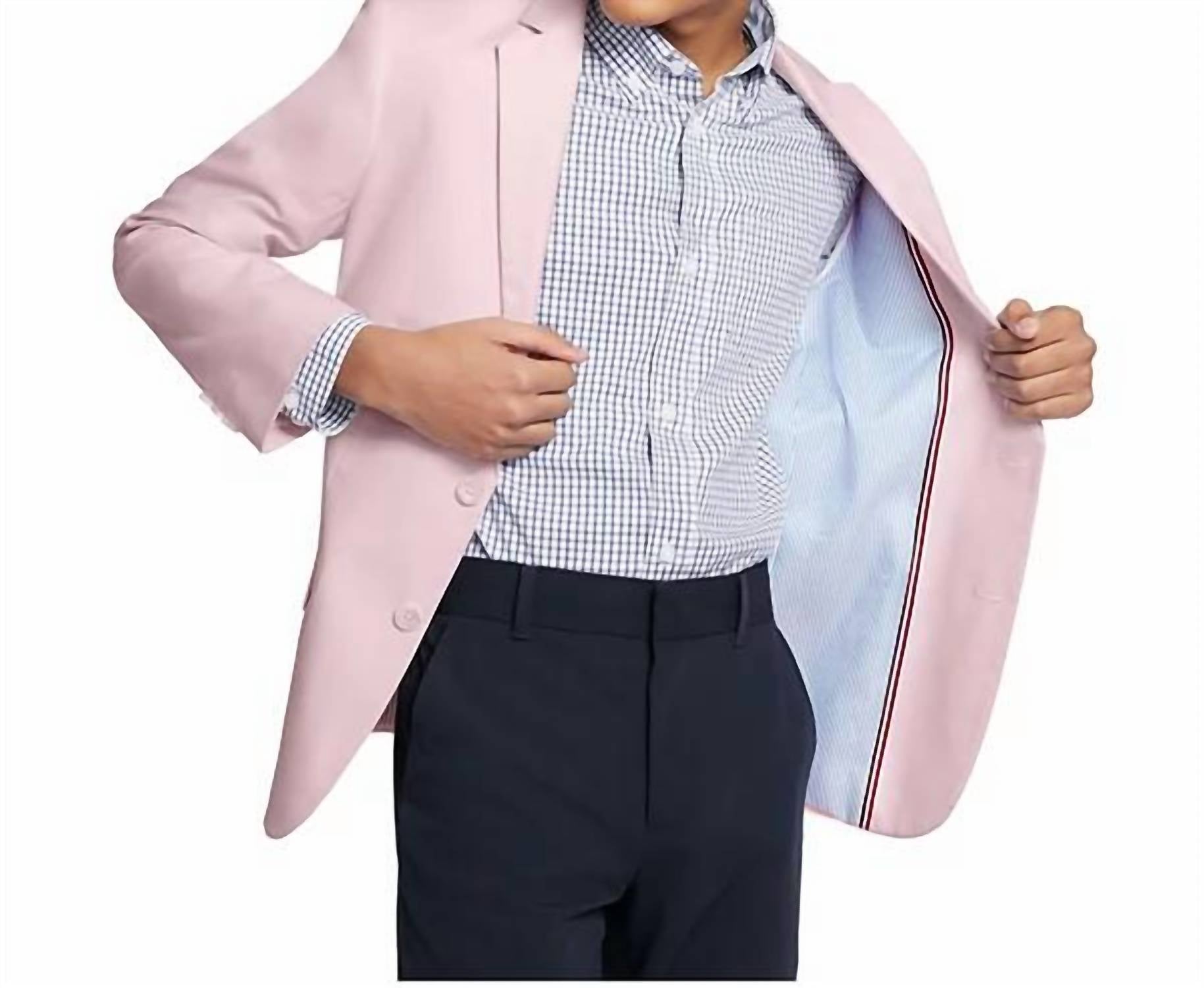 Elevate any ensemble with the Tommy Hilfiger Big Boys Modern-fit Stretch Oxford Sport Coat in a charming pink hue. This cotton blend jacket offers a stylish notch collar and practical 2-button front closure, with functionality enhanced by a welt chest pocket and two hip flap pockets. The signature lining and slight spandex ensure comfort and a perfect fit. Crafted for easy care, simply dry clean to maintain its polished appearance.