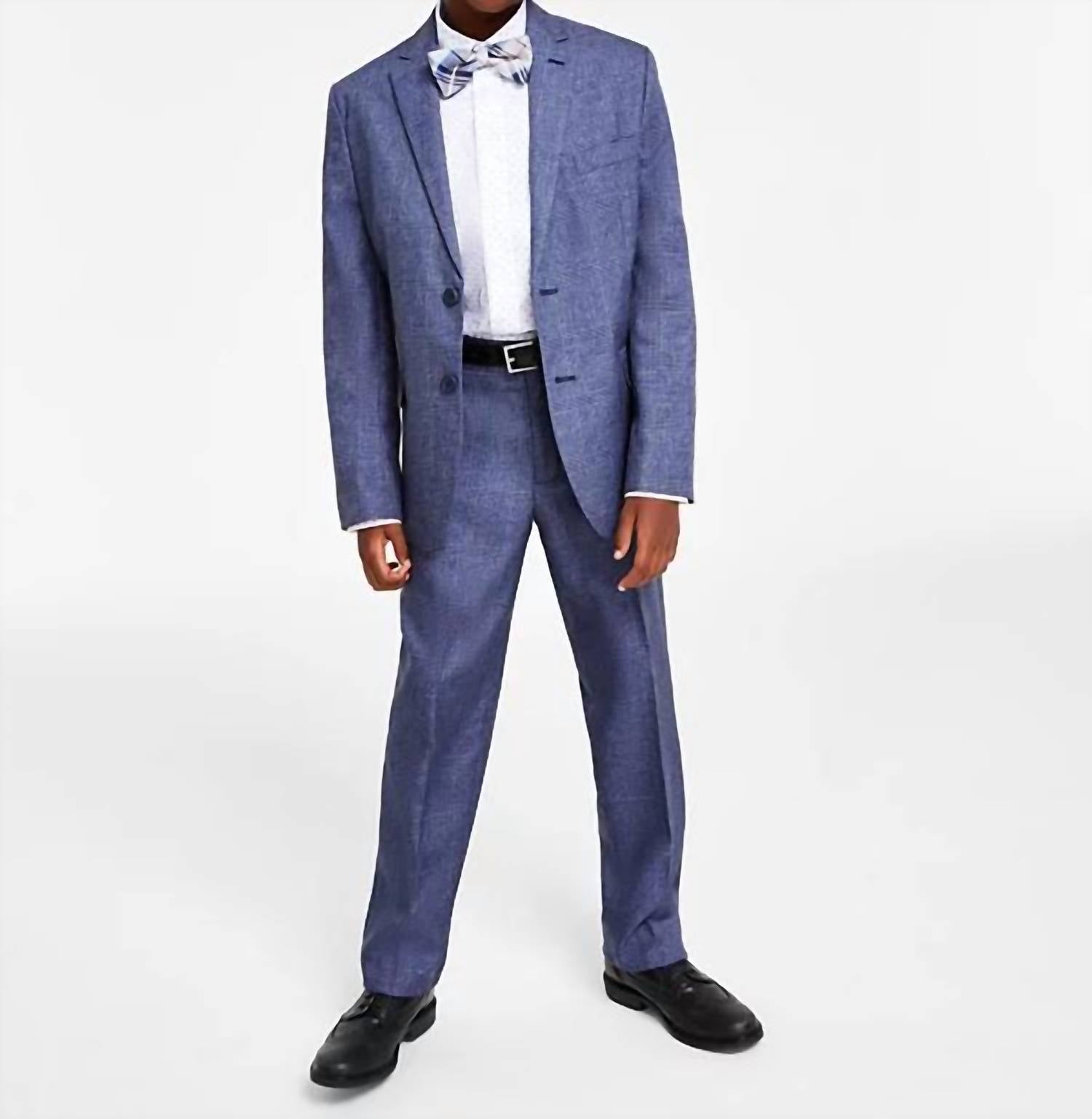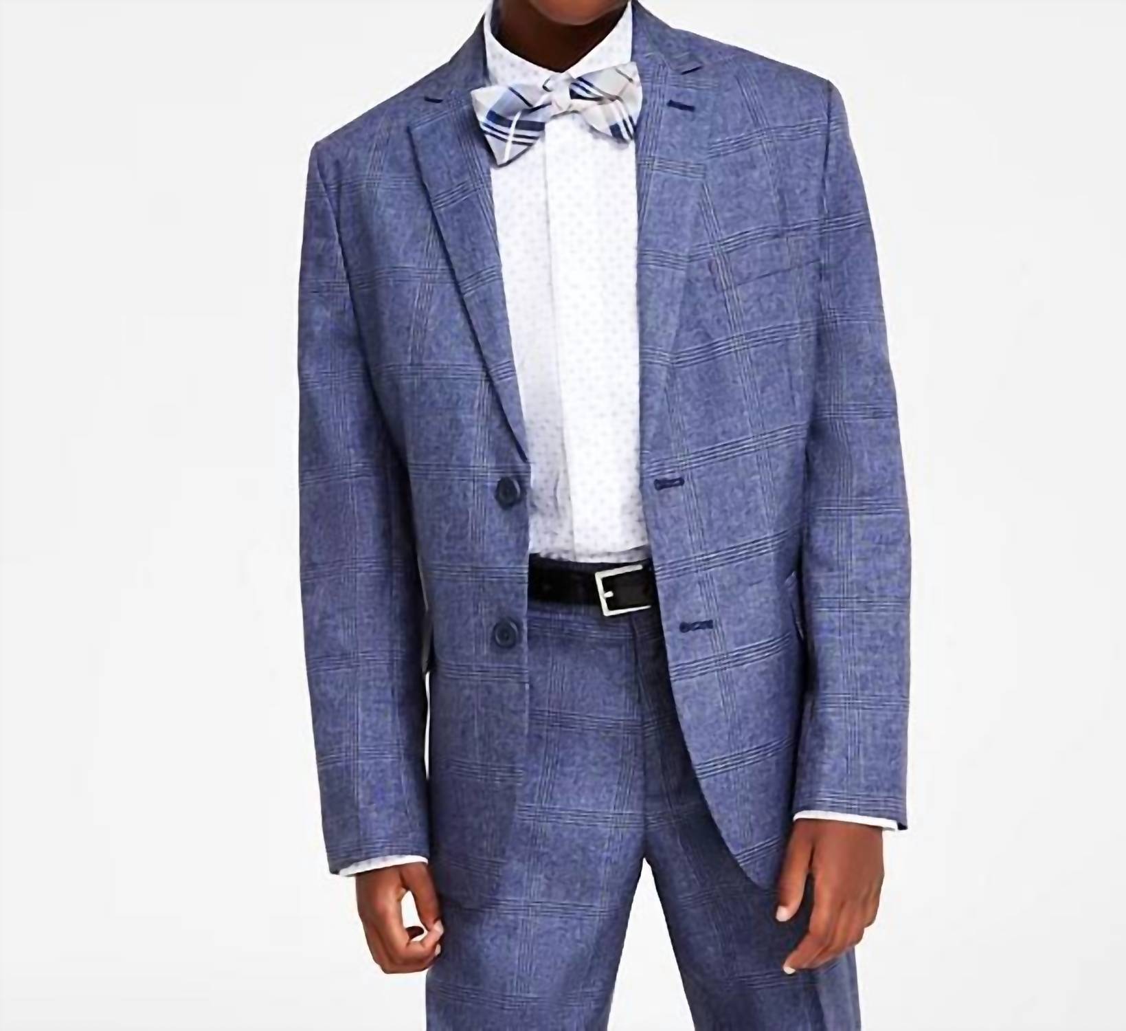 Tommy Hilfiger presents the Big Boys Tonal Windowpane Jacket, a stylish addition to any young gentleman's wardrobe. Made from 100% polyester, this dark blue blazer features a subtle tonal windowpane pattern. Designed with a notch lapel and a 2-button front, it includes two flap-over welt pockets and a fully lined interior with a locker loop for added convenience. Care for this elegant piece is simple with machine washing.