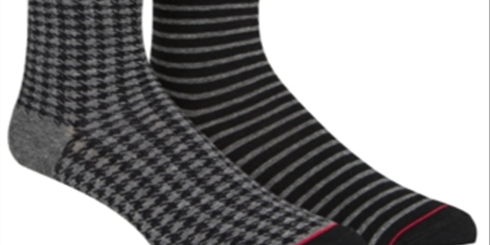 Tommy Hilfiger Men's 2 Pack Houndstooth Crew Socks Gray One Size