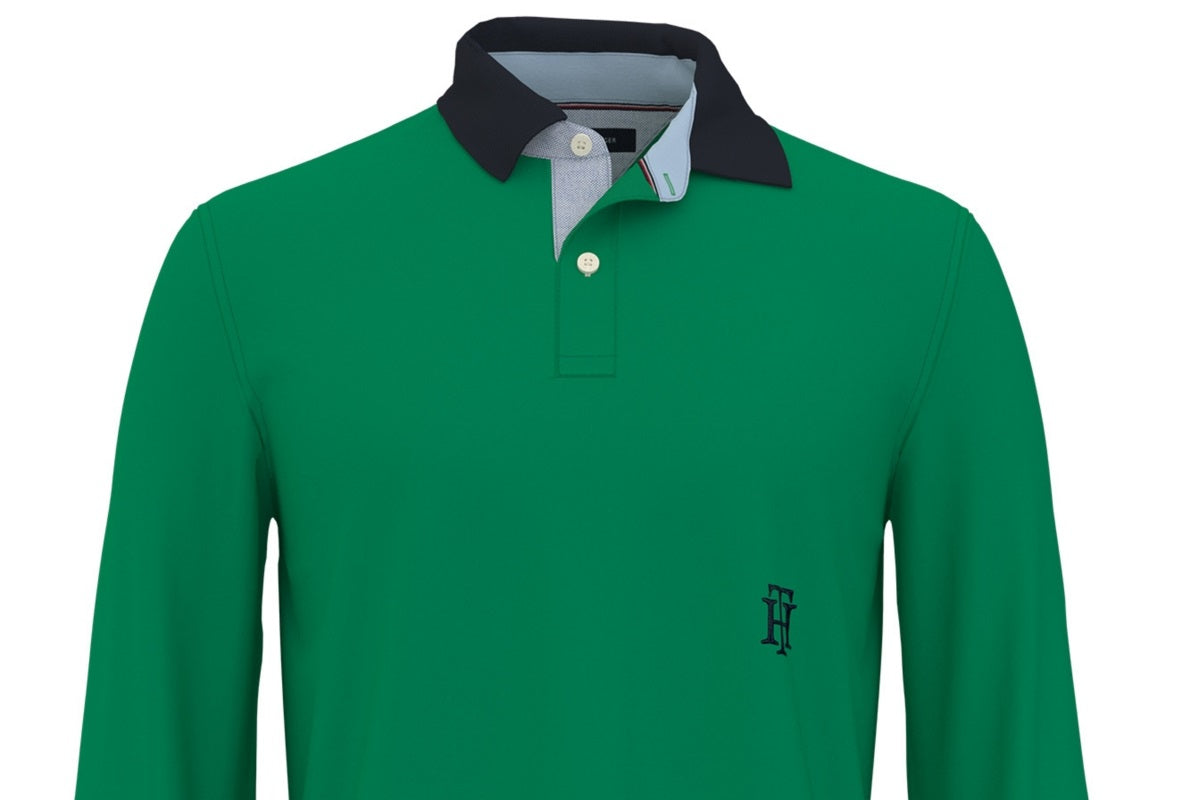 Tommy Hilfiger Men's Essential Logo Long Sleeve Polo Green Size X-Large