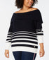 Tommy Hilfiger Women's Color Block Long Sleeve Off Shoulder T-Shirt Sweater Blue Size 1X