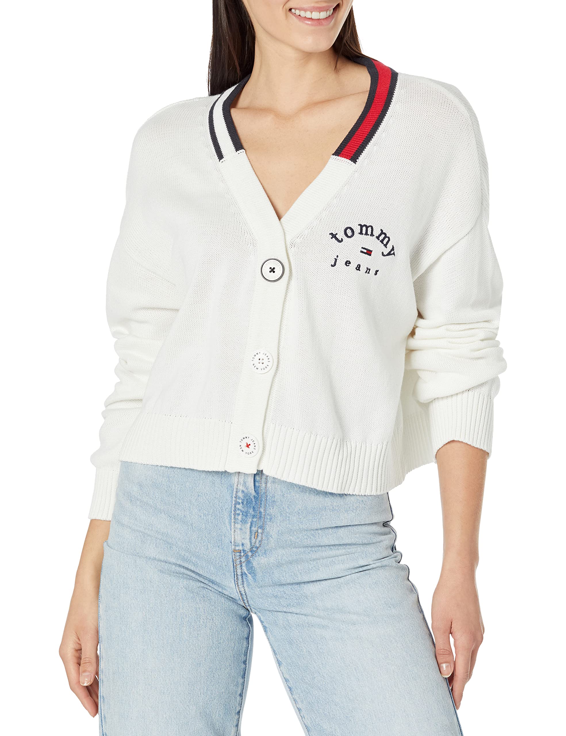Features Cropped oversize cardigan 3 button closure Tommy Hilfiger logo at chest Match This musthave top can be dressed up and down easily It can be worn outside or as a base This top is easy to match with leggings pants jeans skirts shorts boots cardigans jacket coat etc Occasion Tommy Hifiger makes it perfect for any occasions good for work daily wear travel hiking etc