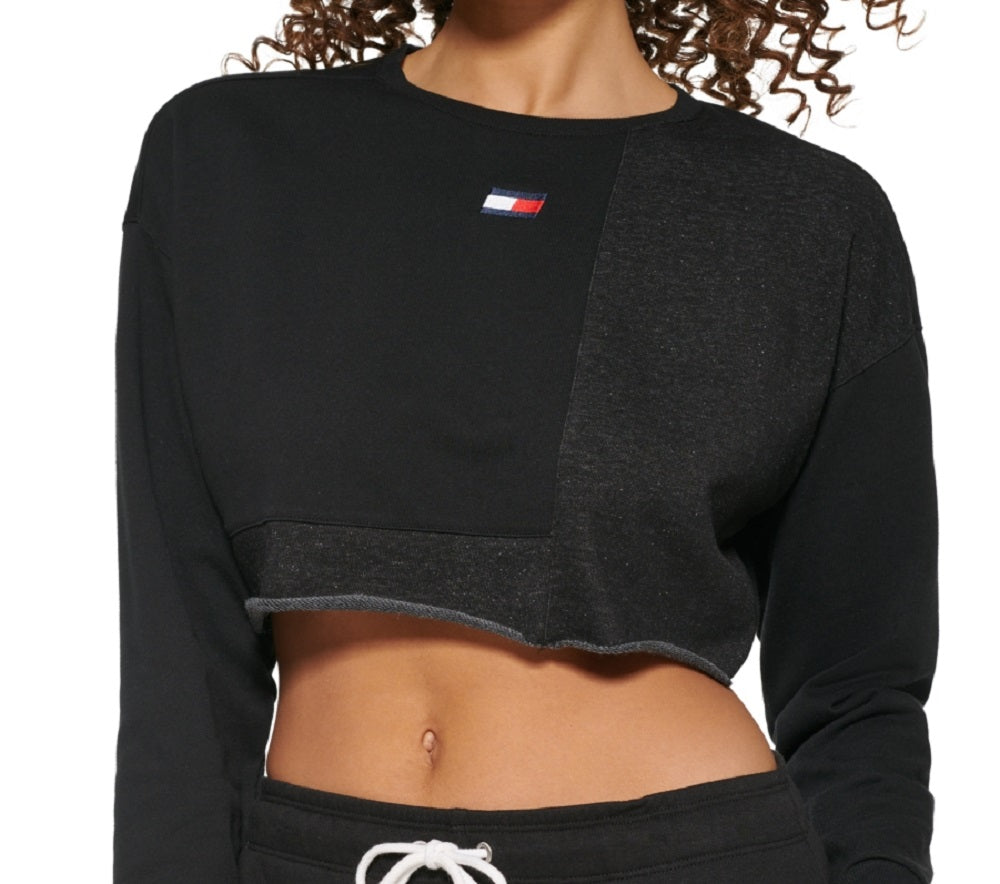 Rock a cropped look at the gym in this Tommy Hilfiger Sport sweatshirt in a patchwork design with a cutoff hemline.| Cropped fit| INSPIRED FOR; Active Lifestyle & Athleisure| Crewneck; patchwork design; logo print; cutoff hem| Cotton/polyester| Machine washable| Imported