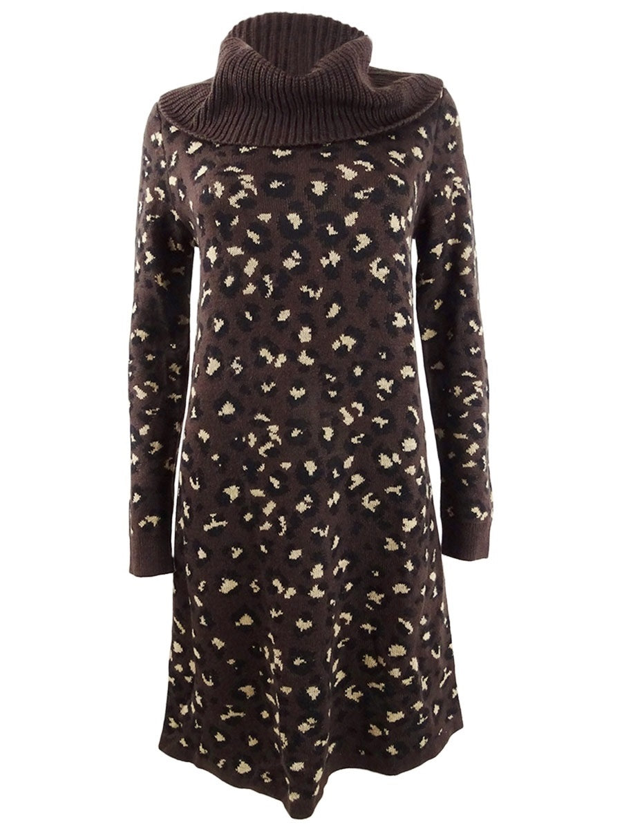 Tommy Hilfiger Women's Leopard Print Sweater Dress Brown Size Small