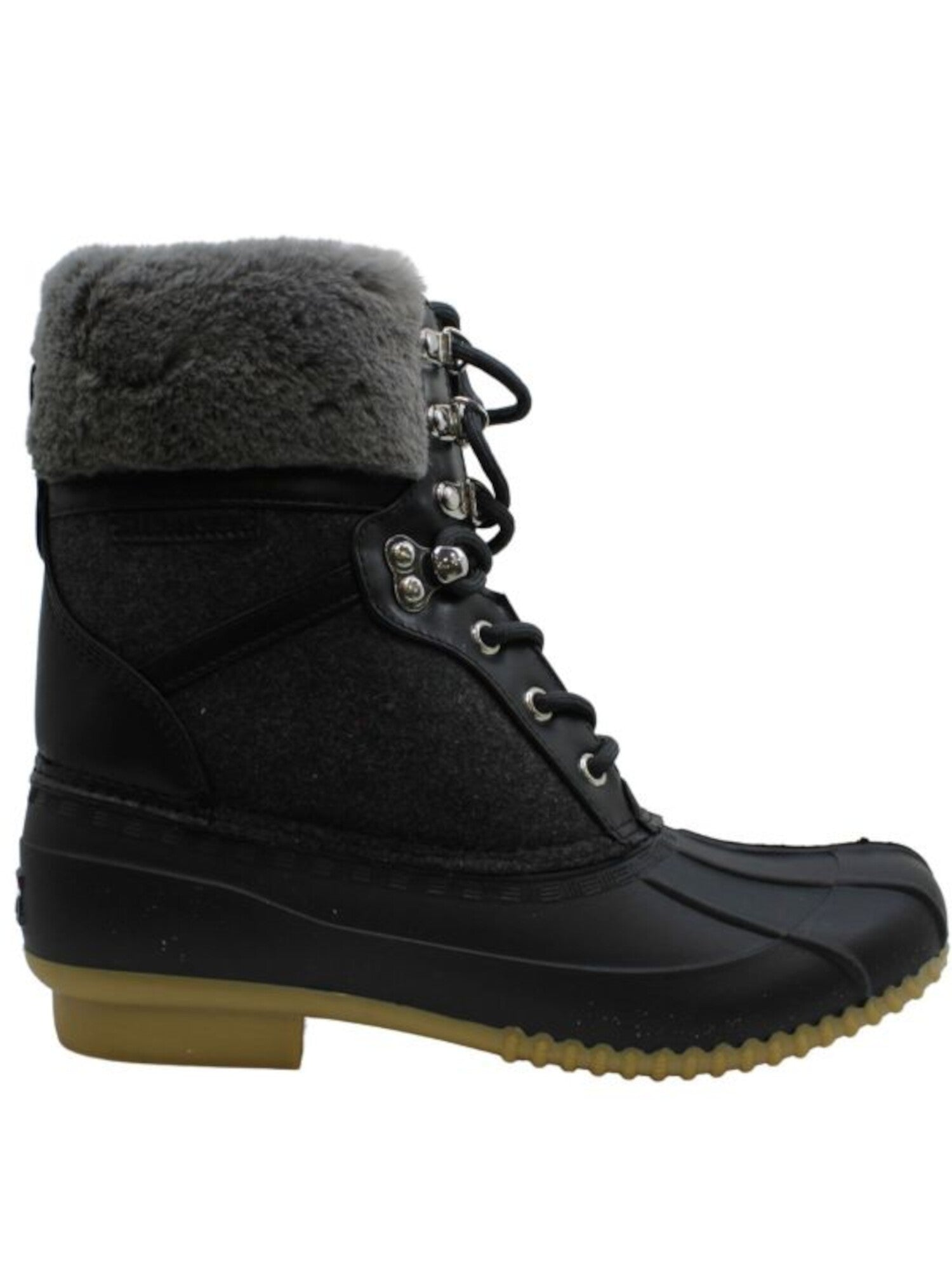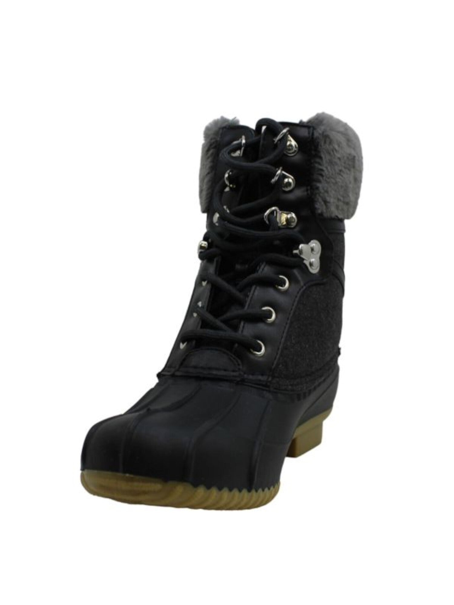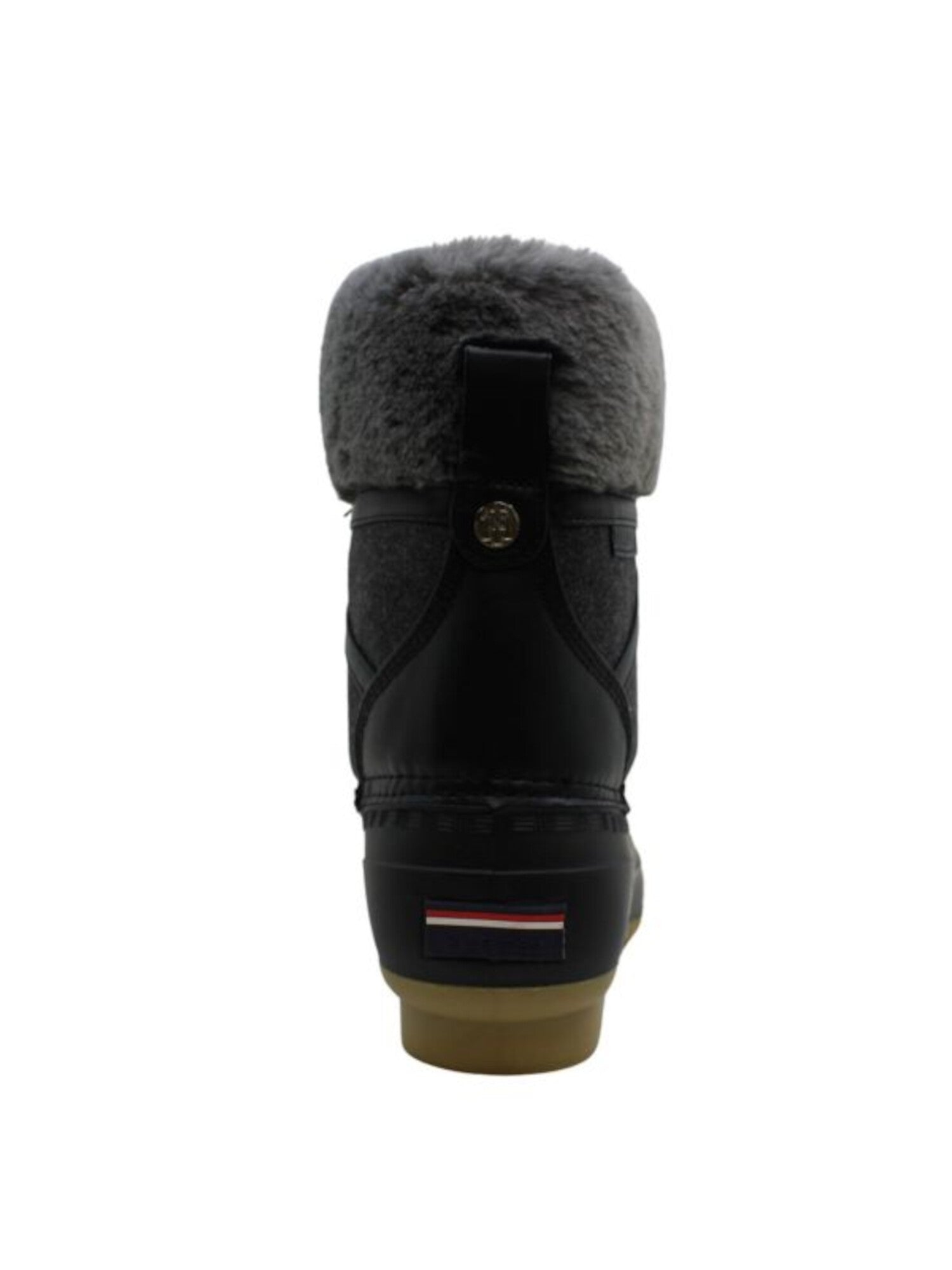 Tommy Hilfiger Women's Metallic Accents Duck Boot Inspired Fur Trim Waterproof Rian Round Toe Block Heel Lace up Snow Boots Black Size 5 M