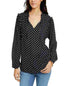 Tommy Hilfiger Women's Printed Ruffled Neck Blouse Blue Size Small