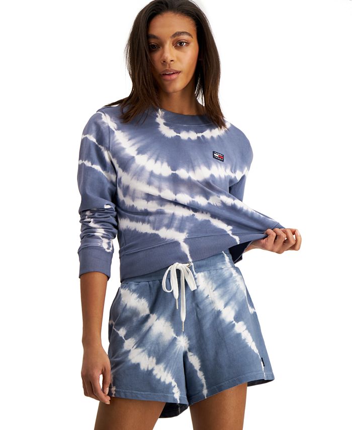 Tommy Jeans Women's Tie Dyed Knit Cotton Shorts Blue Size Large