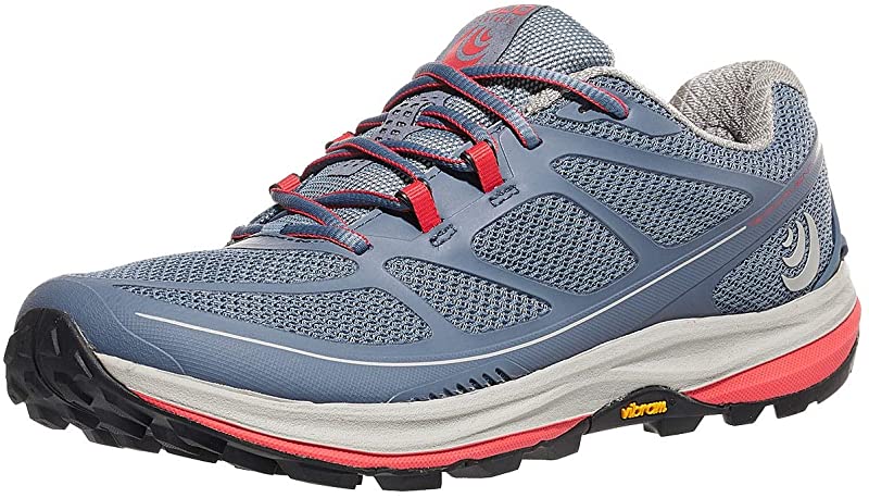 Combining the lightness of a running shoe with the rugged durability of a trail shoe| the Terraventure 2 features a 2-density injected EVA midsole on a rugged Vibram XS Trek outsole| Deeper| more generously spaced lugs improve underfoot traction in mud and slush and a flexible forefoot rock plate shields against rocks and roots| With a fully gusseted tongue| the durable mesh and PU printed upper of our all terrain running shoes now features drainage ports for water release and quicker drying| A 5mm Ortholite footbed withstands compression set and our uniquely fitted gaiter attachment makes it compatible with our stretch nylon Topo gaiter (optional and sold separately)