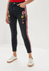 Stripe Floral Embroidery Skinny Jeans