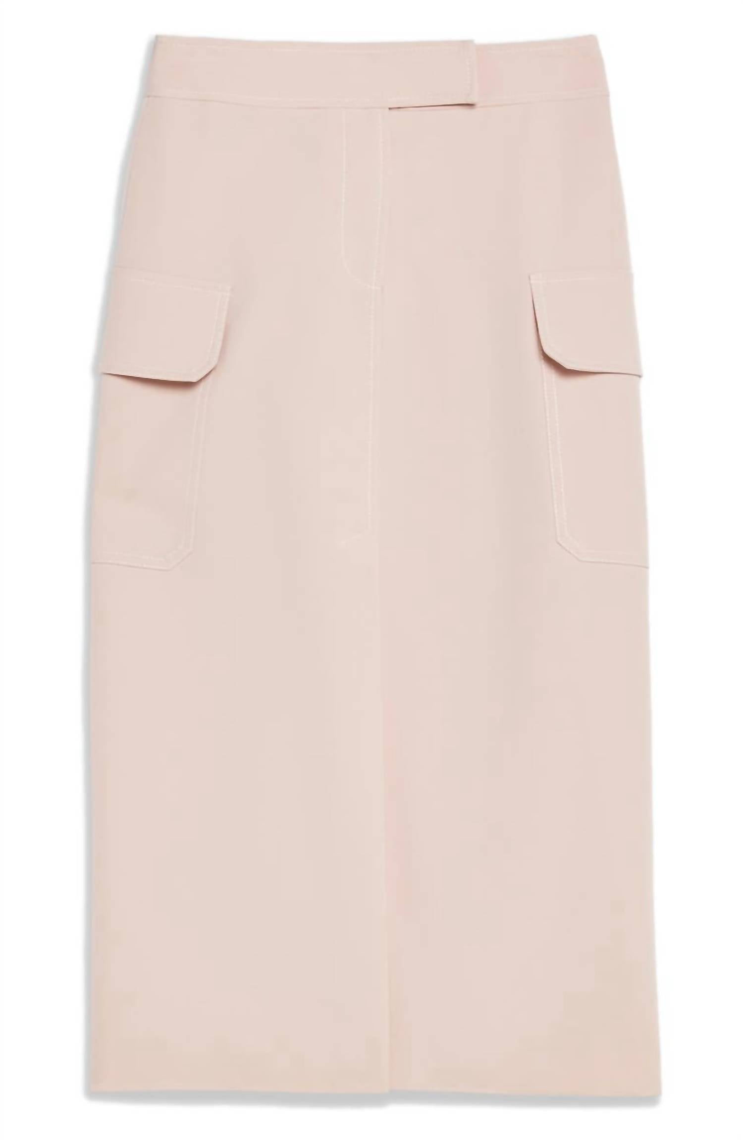 Show off just the right amount of skin in this beautifuly designed midi length skirt. Turn on the charm in this chic midi skirt styled with pronounced topstitching and handy flap pockets. Side flap pockets Front slit 16" Unlined 87% polyester, 13% elastane Machine wash, line dry Length 32"