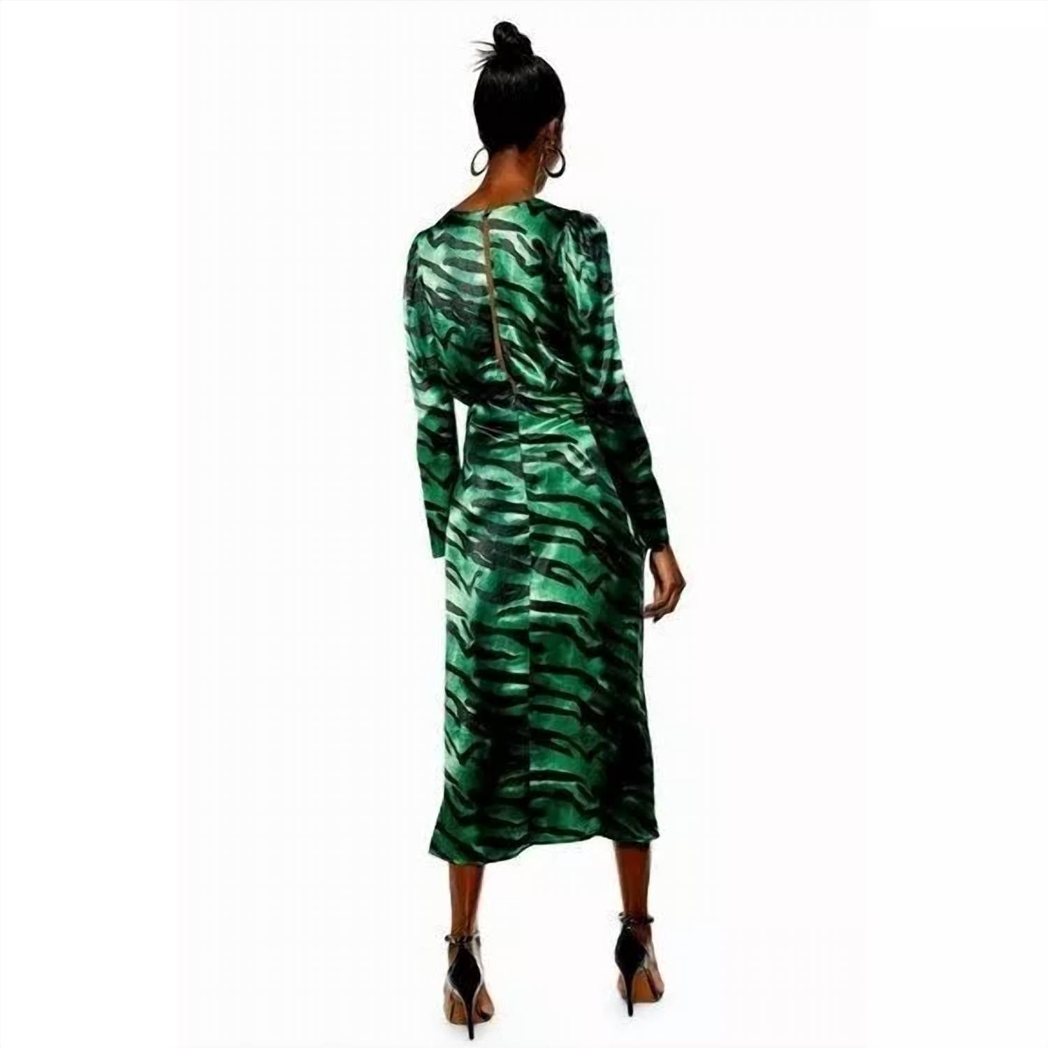 Topshop - Zebra Print Ruched Puff Sleeve Satin Midi Dress