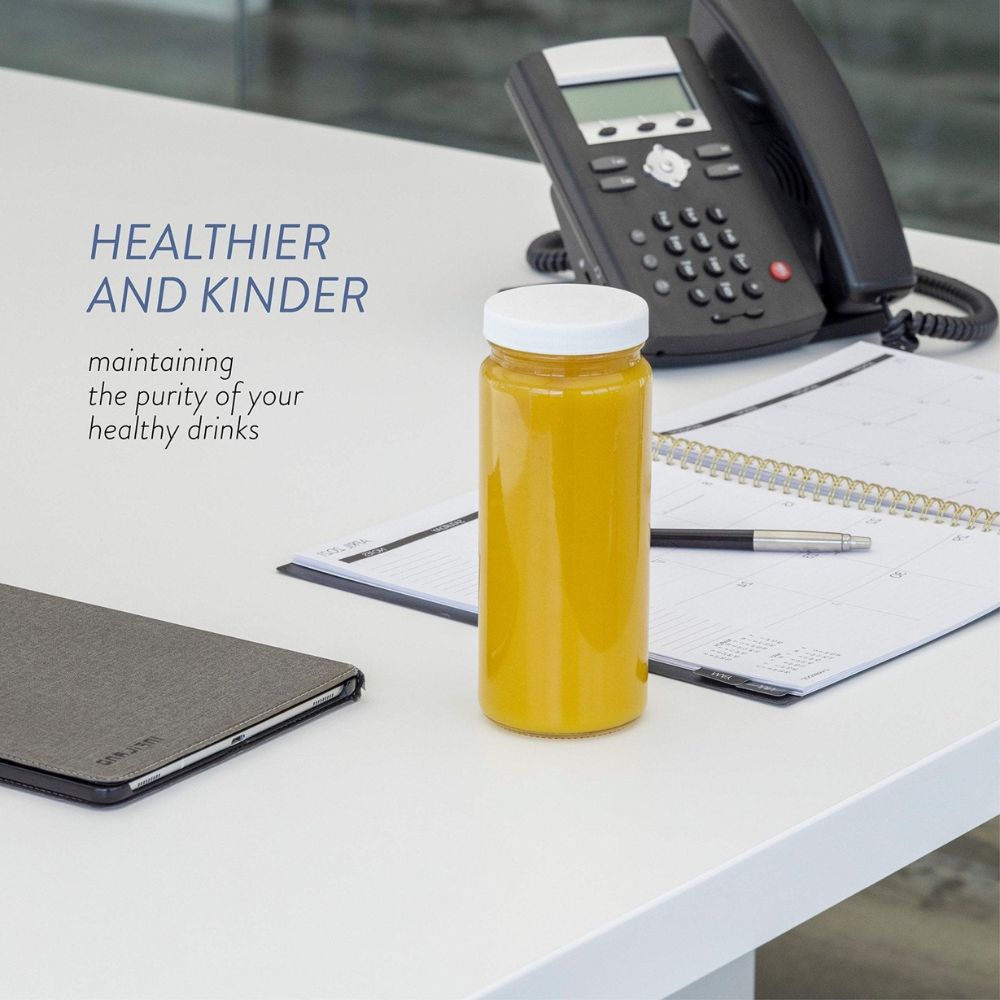 • Full Mouth -The glass jars’ full-width mouth enables you to fill the bottle with freshly squeezed beverages directly from the juicer. Cleaning is a breeze, and adding fruit or herbs is now a convenient option.