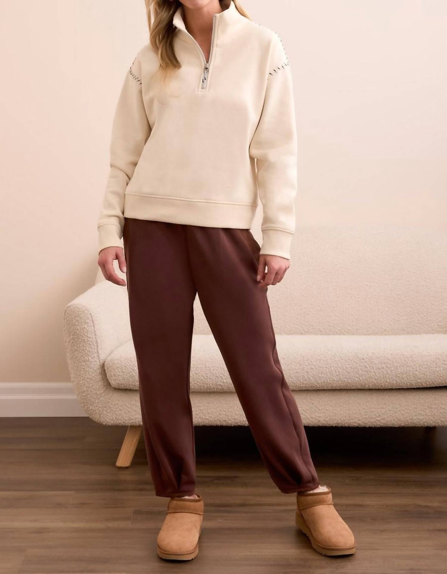 Tribal - French Terry Stitch-accent Zip Funnel Neck Sweater