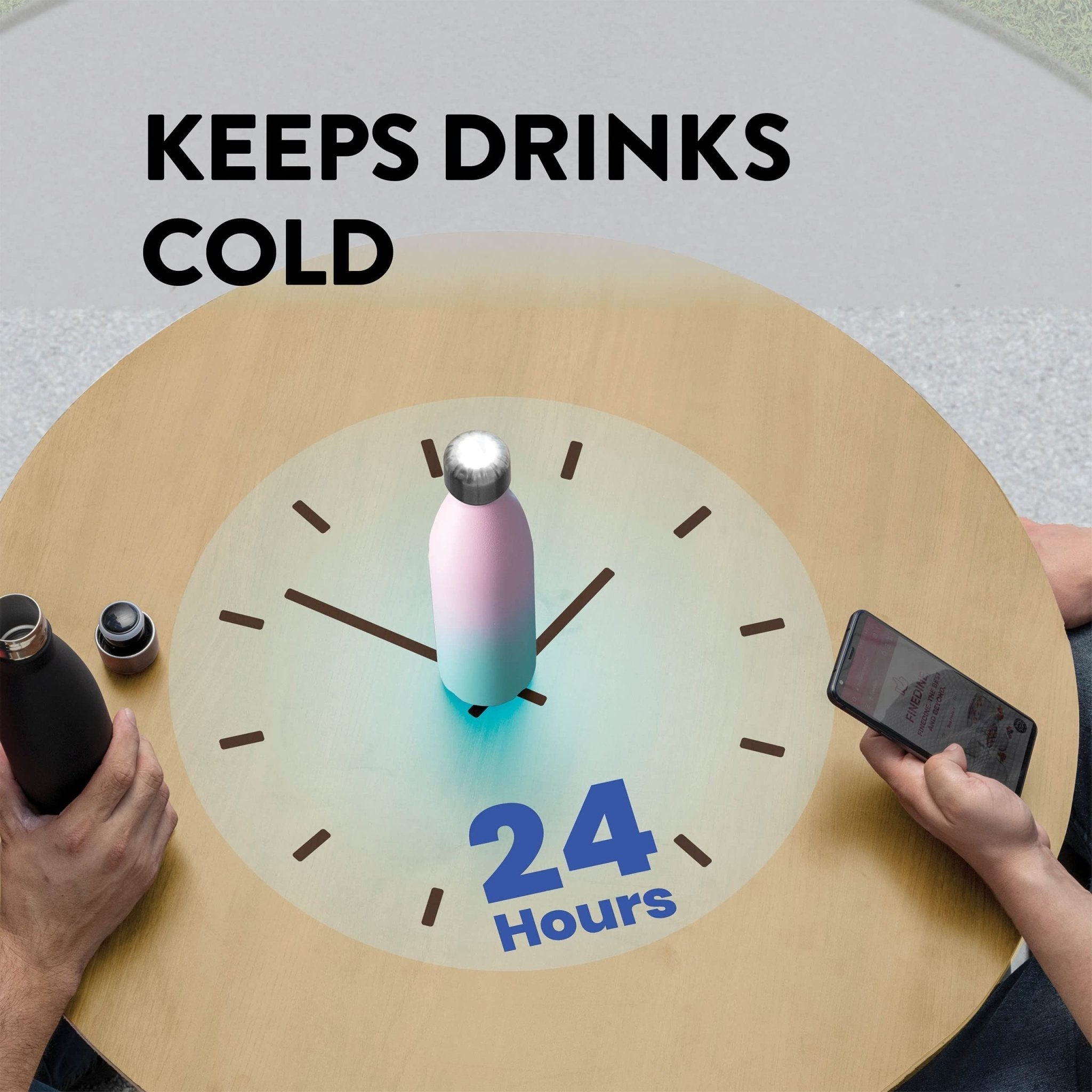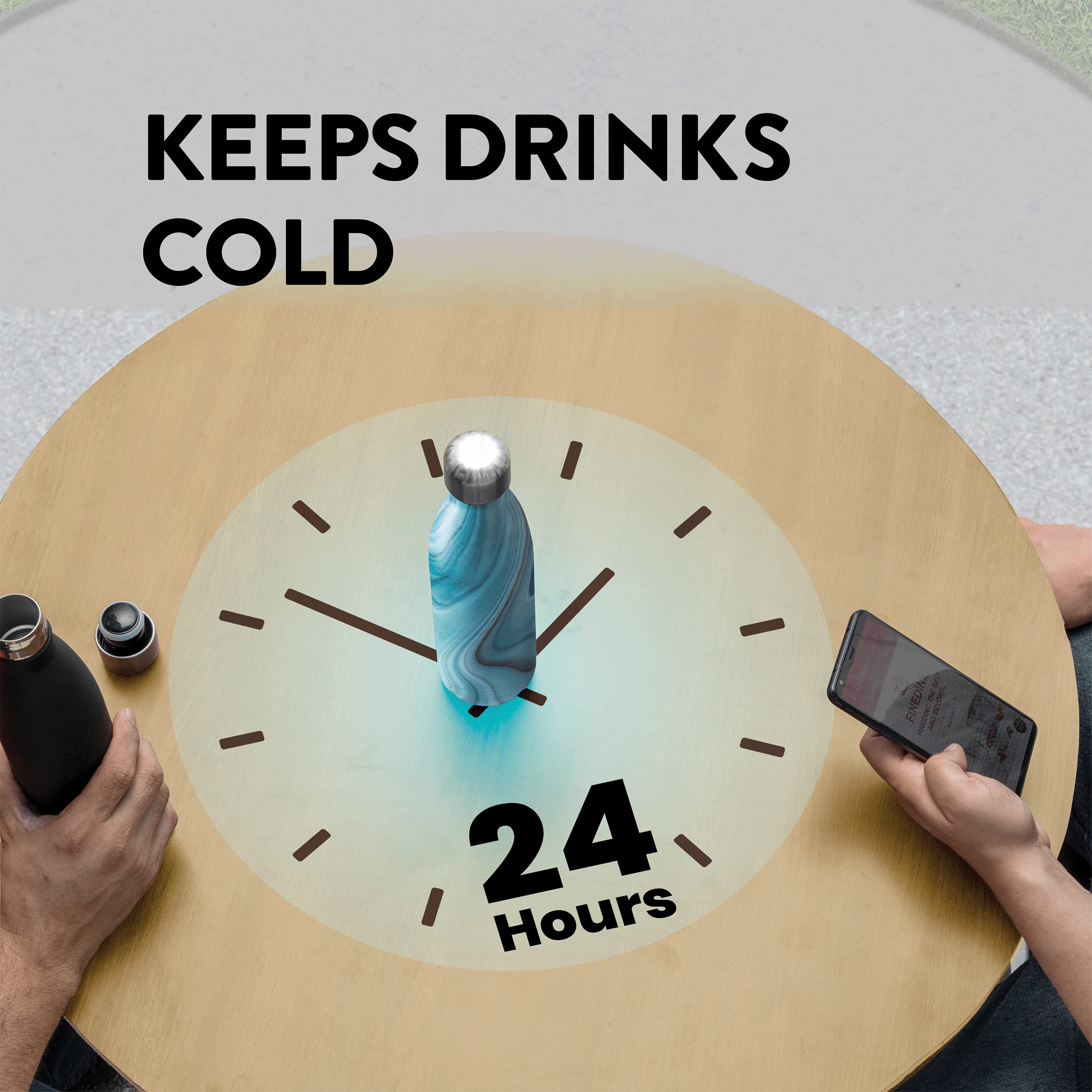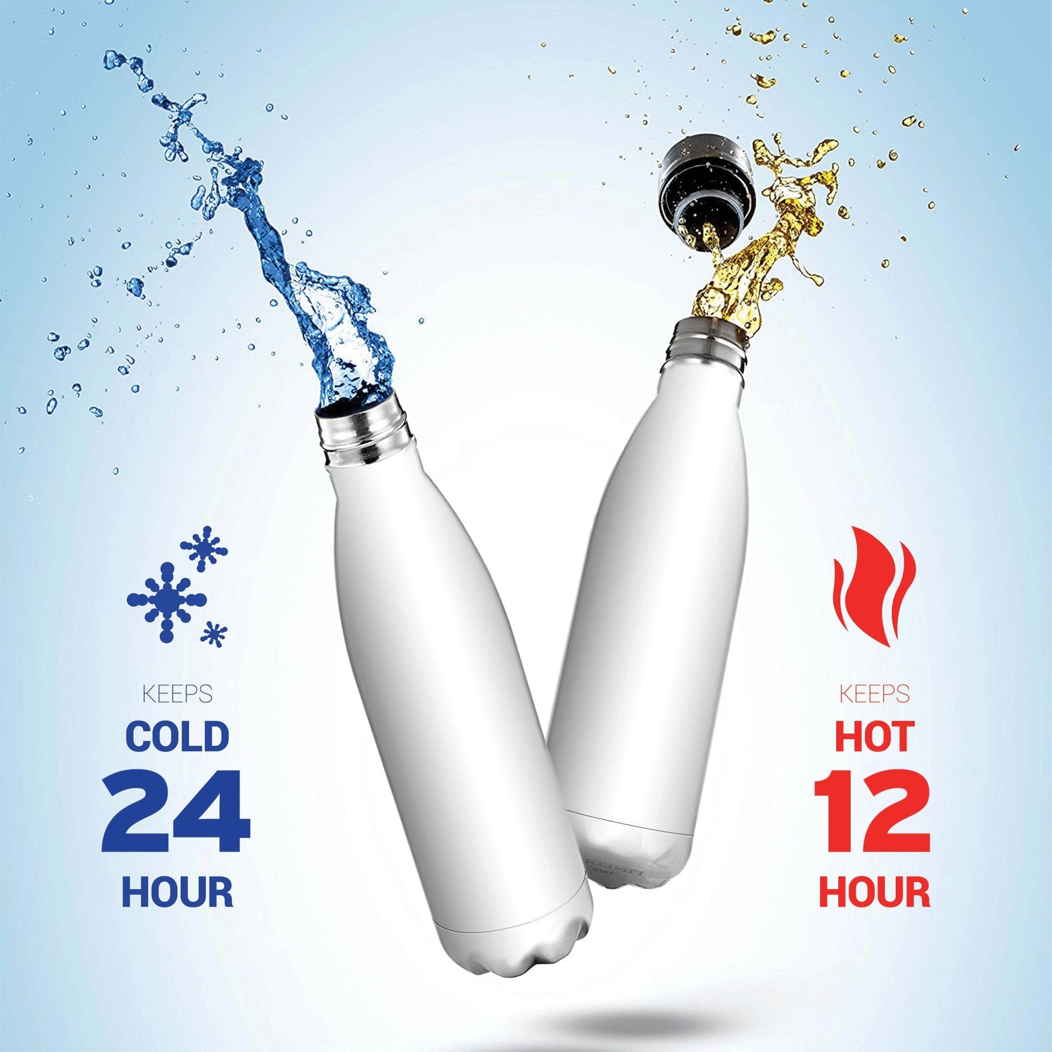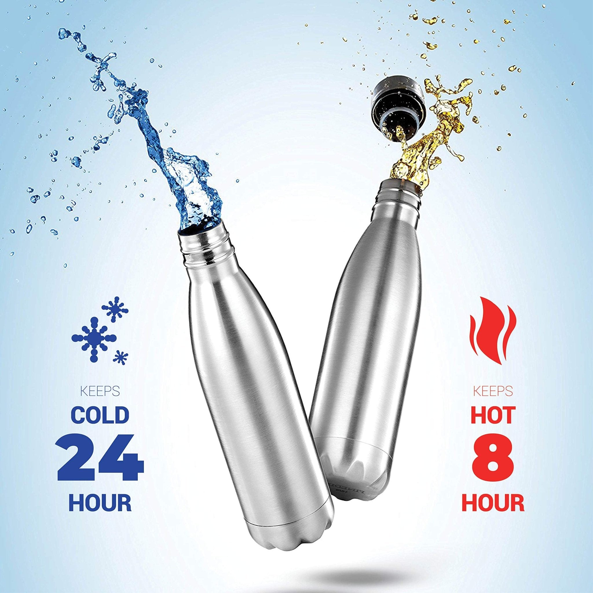 - DOUBLE WALL - This bottle is crafted with double walls, the only bottle out there with inside and outside stainless steel. Beverage will be kept hot for up to 12 hours and cold for up to 24! The double-wall feature prevents condensation and burns, retaining the temperature of your beverage.