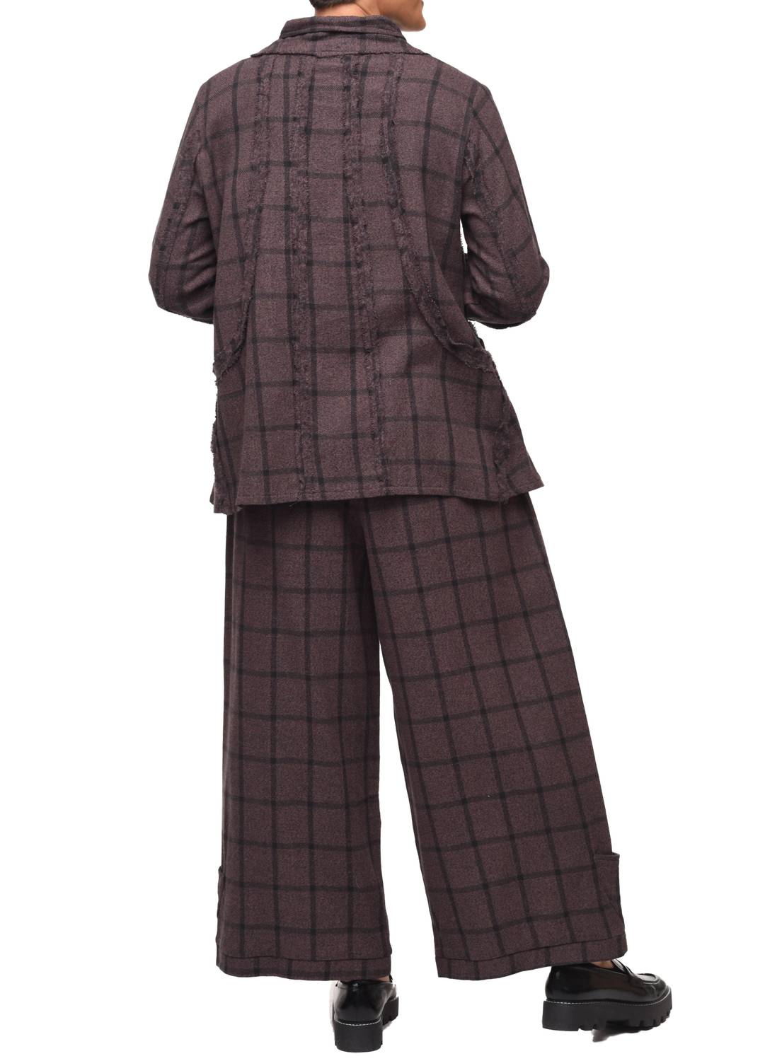 A jacket so versatile you can literally wear it with anything. Brown and black hip-length jacket in boucle featuring exposed seams, raw edges, and front pockets. Body Length: 27 in to 29 ½ in. Chest: 41 in to 51 in. Sleeve Length: 23 in to 24 ¼ in. 100% Cotton. Machine wash. Hang to dry. The model is wearing a size small.
