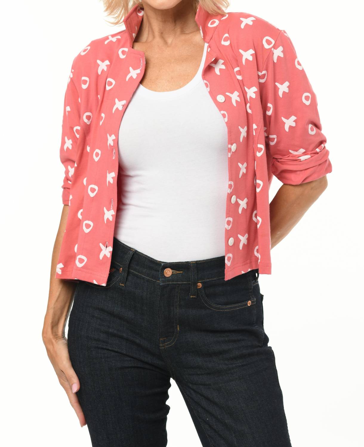 A casual yet cool jacket that every closset needs. Meet the Pablo Jacket by Tulip Clothing, a vibrant and stylish addition to your spring wardrobe in the color Paradise Xo. Crafted from a 96% cotton, 4% spandex blend, this long sleeve jacket promises comfort and a flattering fit with its graphic pattern and collar neckline. Enjoy the boho chic trend this holiday season with dimensions ranging from XS to XXL. Closure: Button closure.