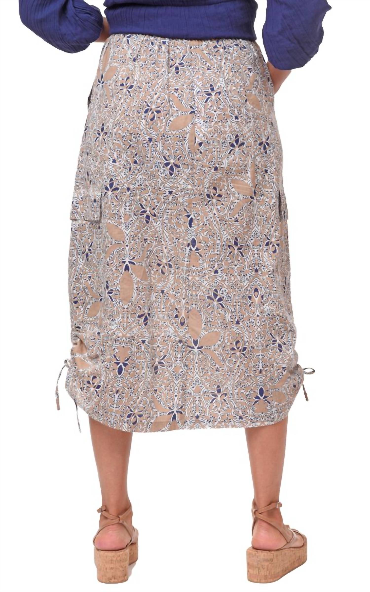 Tuck your favorite tee into this midi length skirt for an effortlessly cool look. Introducing the Verona Skirt by Tulip Clothing, a stylish midi skirt perfect for any holiday party. This Kumari-colored skirt is crafted from 100% cotton, featuring an elastic waistband with a drawstring hem and convenient pockets for functionality. Closure: Pull on. Dimensions include a relaxed waist that ranges from XS to XXL and a length of 31.5" for size XS. Care: Machine wash, line dry. The model is wearing a size small.