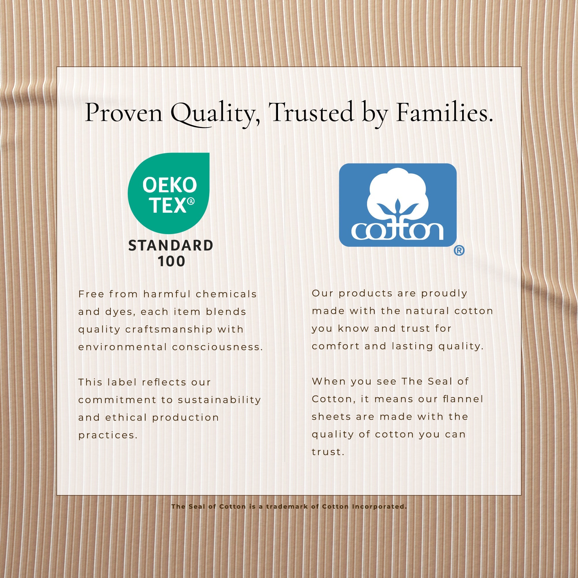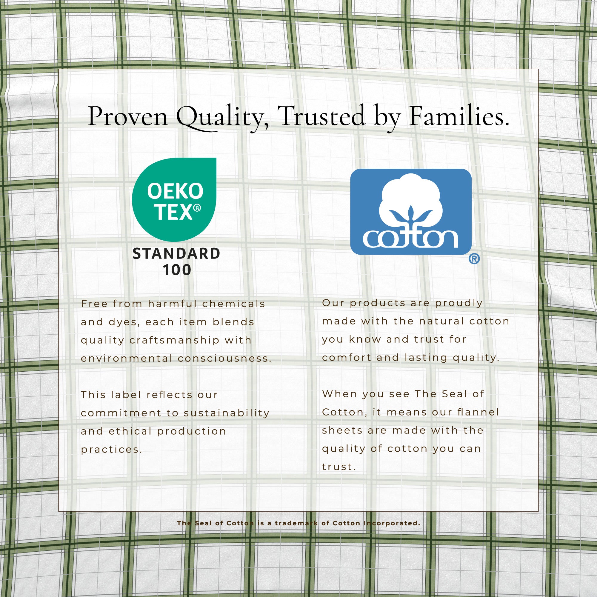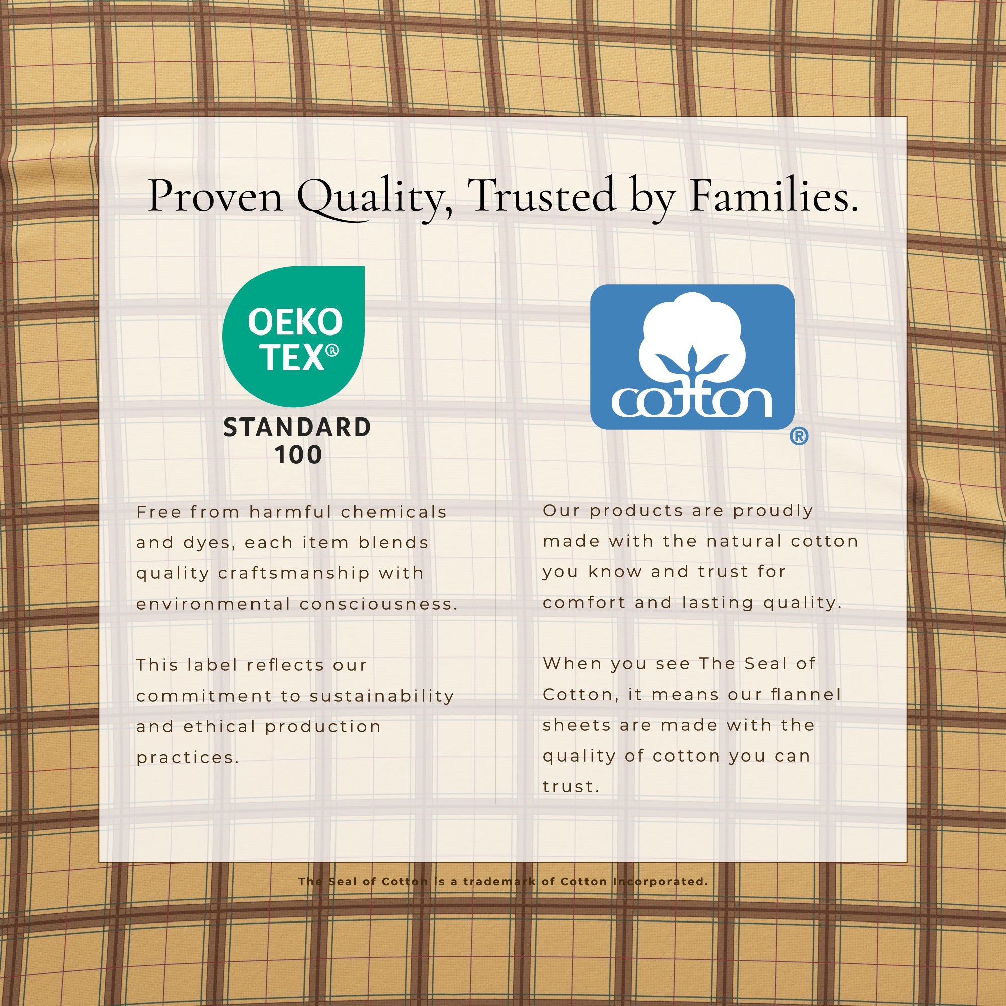 Fall to sleep in ultra-soft, breathable, and quality Turkish cotton flannel sheets. This collection features plaids and stripes that will add a subtle update to your bedroom for fall and winter. These 100% cotton sheets are double-brushed for softness and durability to ensure you have a set that offers comfort every night. Flannel sheets offer warmth for even the coldest of nights, so add these luxurious cotton flannel sheets to your bed and experience true comfort. Products that look good, feel good, and are made well, so you can trust you're getting high-quality products. These cotton flannel sheets are Standard 100 Certified by OEKO-TEX®.