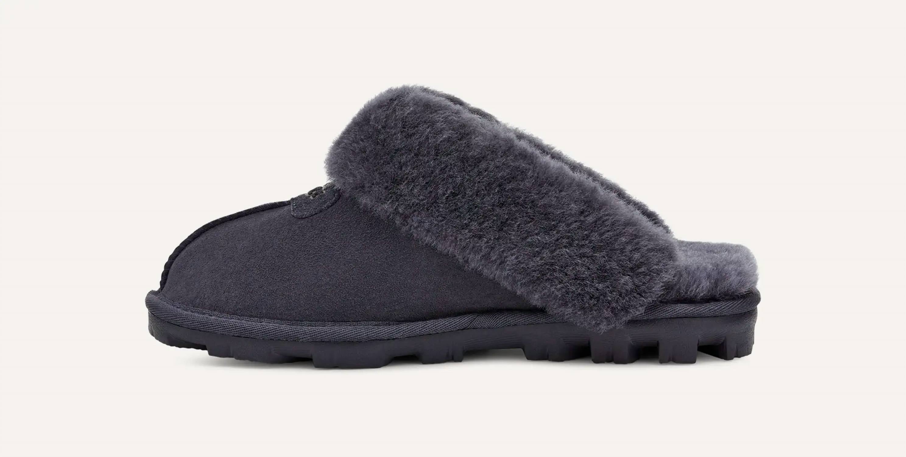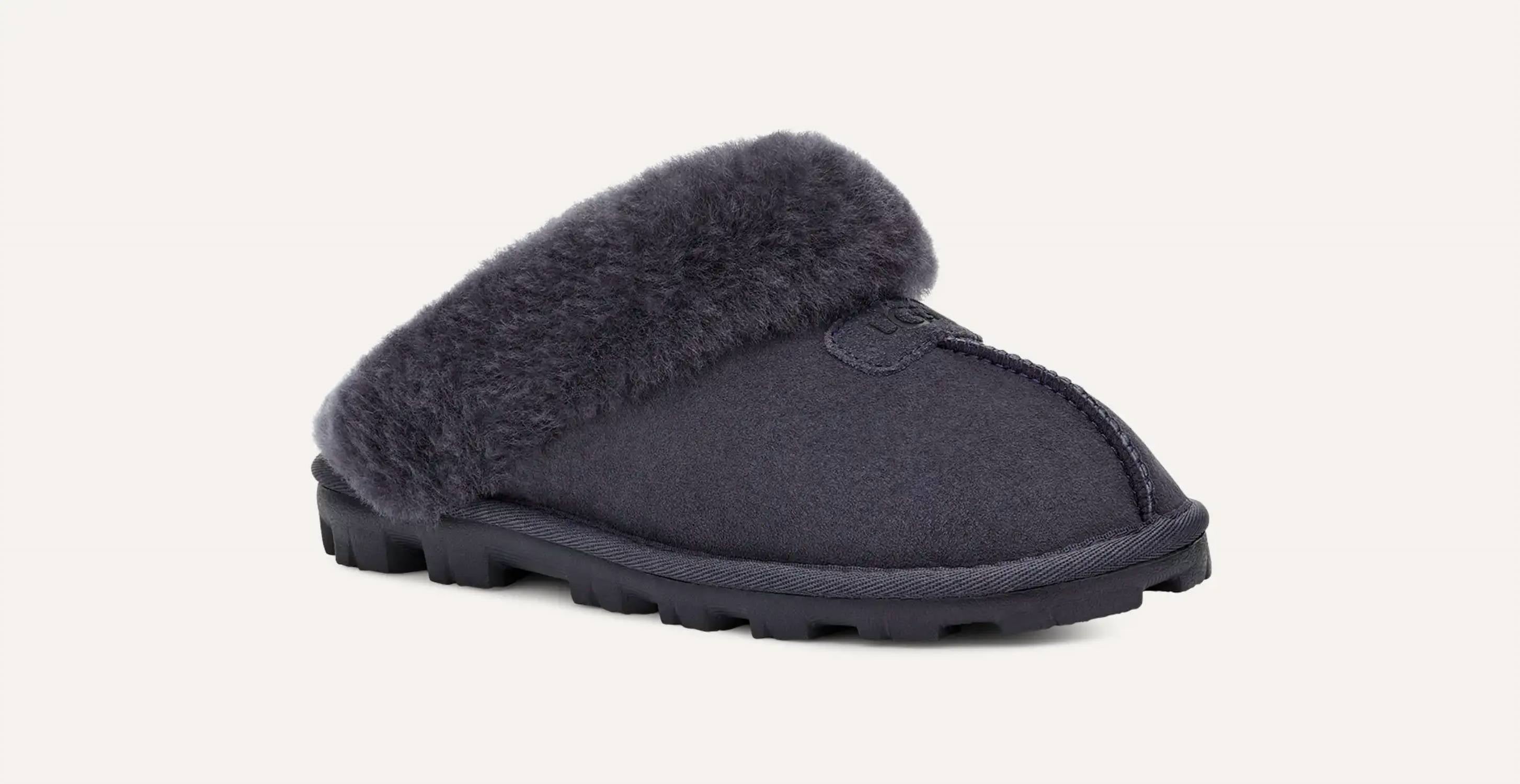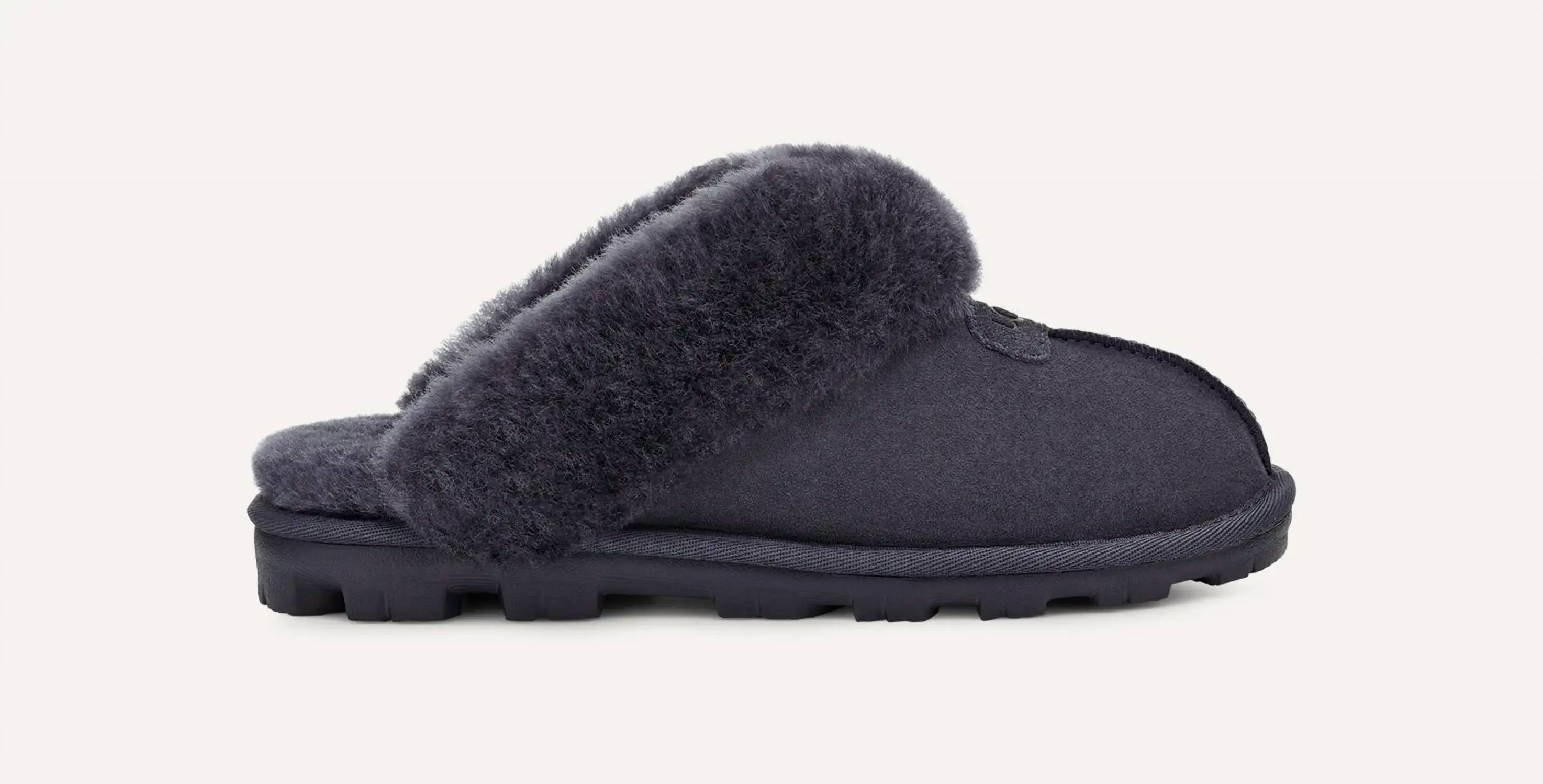 Pair these with a cozy robe and we call this loungewear luxe. If the world is a stage, the Coquette always snags the leading role. Coquette is cute, comfy, and committed to your self-care. As soft as it is versatile, the Coquette features our soft sheepskin and a lightweight sole that easily travels indoors and out. This product was made in a factory that supports women in our supply chain with the help of HERproject, a collaborative initiative that creates partnerships with brands like ours to empower and educate women in the workplace. The outsole of this product is either a sugarcane EVA outsole, which is a responsible compound using sugarcane foam that allows us to reduce dependency on fossil fuels by replacing petroleum-based ethylene, or a Treadlite by UGG™ outsole. Item No. 5125 17mm Twinface sheepskin upper 17mm sheepskin insole Sugarcane EVA outsole or Treadlite by UGG™ EVA outsole Polyester binding or textile binding made from 100% recycled polyester fibers Suede label with embossed The UGG® Logo RN 88276 This product contains real fur from sheep or lamb. Fur may be sourced from Australia, Ireland, the United Kingdom, or the United States. It has been artificially dyed and treated.