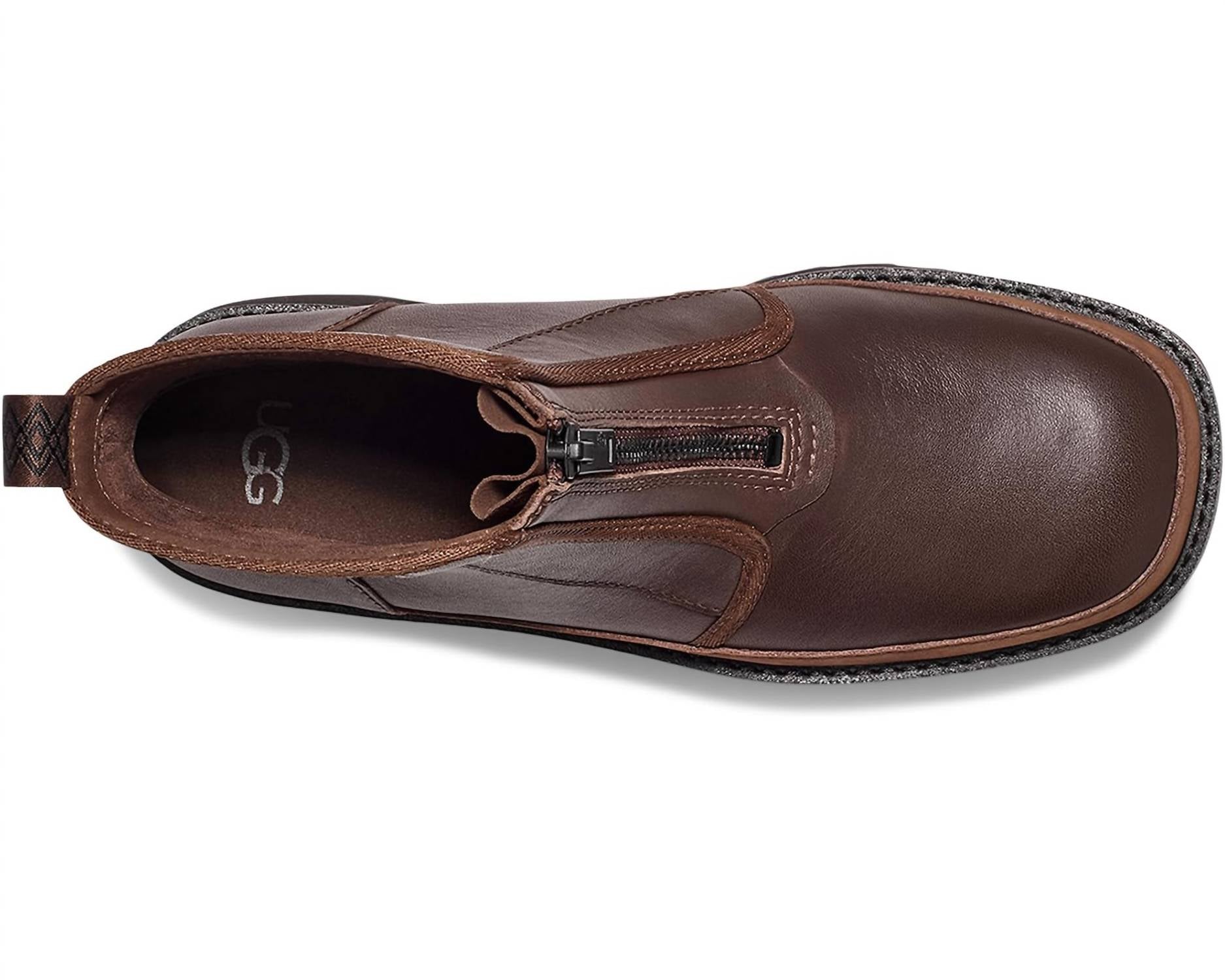 Say hello to the perfect, most versatile boot. The ankle height makes this style easily transition from day to night. Wear them with your favorite skinny jeans and tee for a more laid back look, or pair them with your favorite mini dress and jacket for a night out on the town. Introducing the UGG Women's Cityfunc Zip Boots, a stylish and practical choice for urban adventures in Burnt Cedar. These ankle boots are crafted from water-resistant leather, featuring a 5.5" shaft height and a platform heel with 2" height for a comfortable lift. The design incorporates a front shaft zipper and a rear pull tab made from 100% recycled polyester fibers, ideal for casual wear. Lined with soft microfiber and breathable textiles, this pair also includes a lightweight sugarcane EVA midsole and a durable rubber outsole for long-lasting wear.