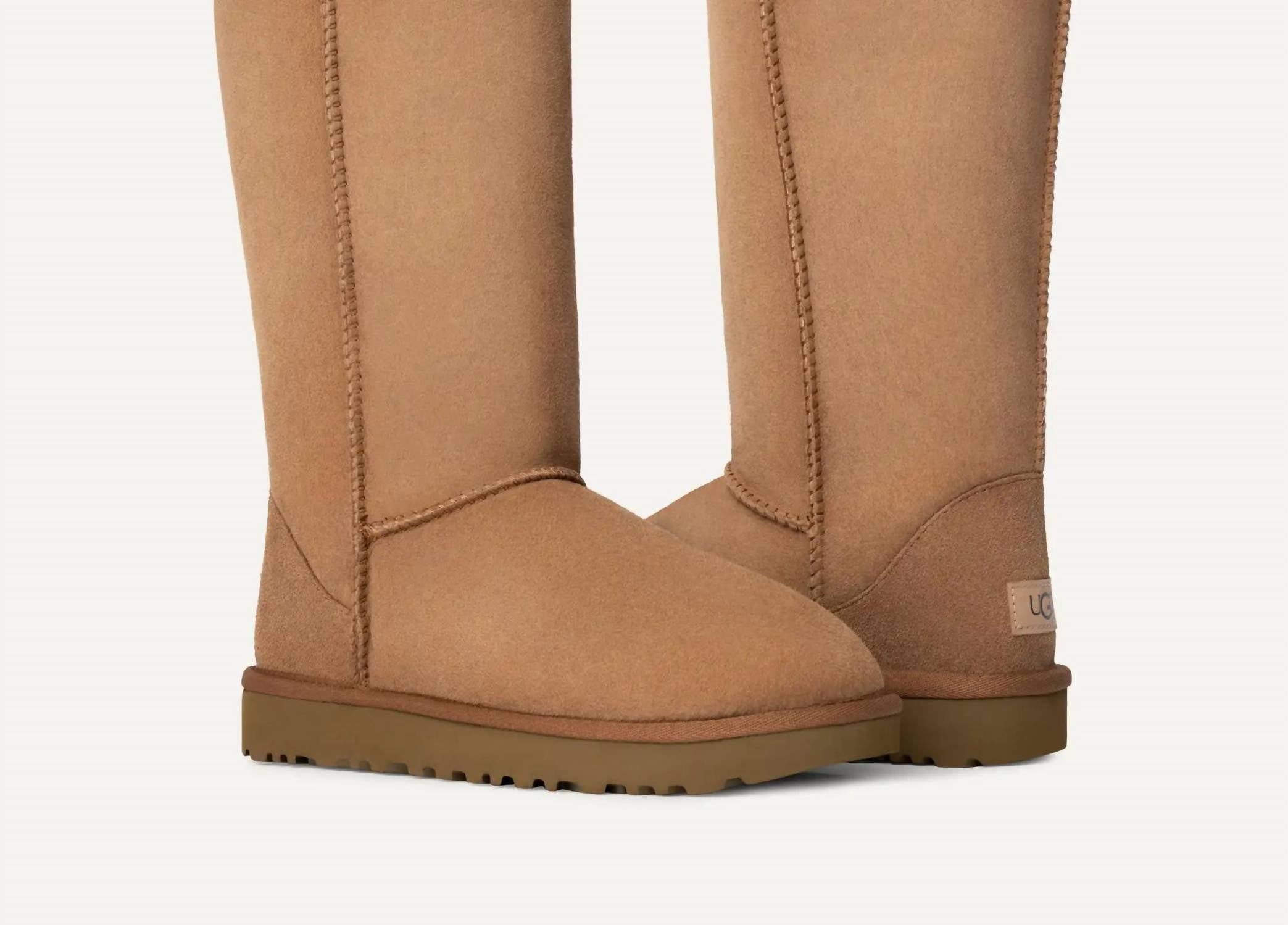 This boot has a water-resistant finish to help keep your feet dry. It’s made with soft sheepskin on the outside and lined with the same cozy material on the inside, including a plush sheepskin insole for added comfort. The stitching adds a nice detail, and the suede heel gives extra support. The lightweight sole is made from either eco-friendly sugarcane foam or a special material that’s built for comfort and grip. It also features recycled or polyester trim and a leather logo patch on the heel. With an 11.75-inch shaft, it gives great coverage and a classic look.