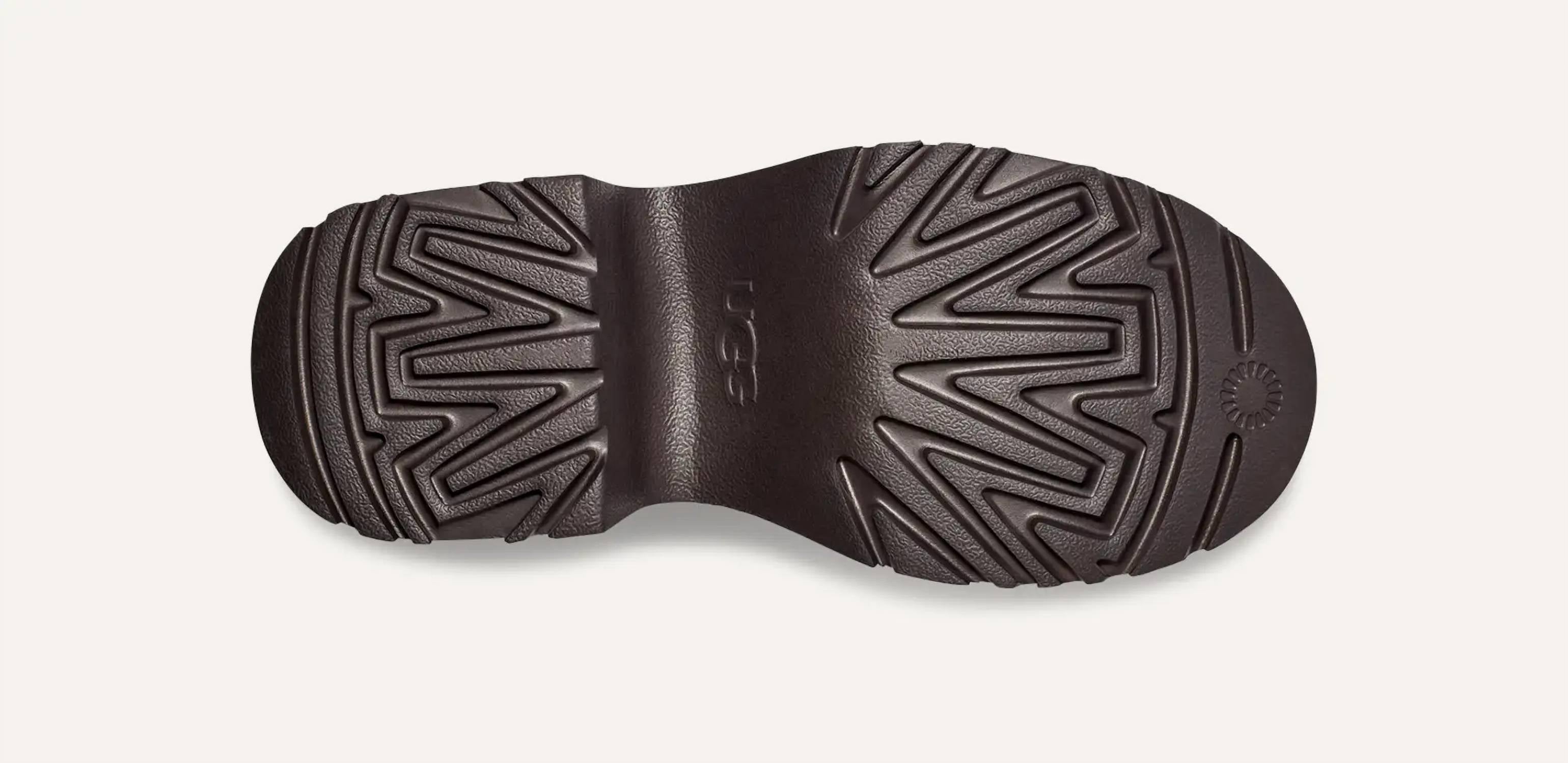 Step into style with the Women's Classic Ultra Mini New Heights Boot by UGG, featuring a bold Black suede upper and a cozy UGGplush™ lining for ultimate comfort. Designed with women in mind, this boot boasts a striking 2.75" platform and a 3" block heel for an elevated look. The footwear is completed with a rear pull tab and a durable sugarcane EVA outsole, ensuring both style and functionality. Highlighting sustainable fashion, the vamp lining and sockliner are crafted from 60% upcycled wool and 40% TENCEL™ Lyocell.