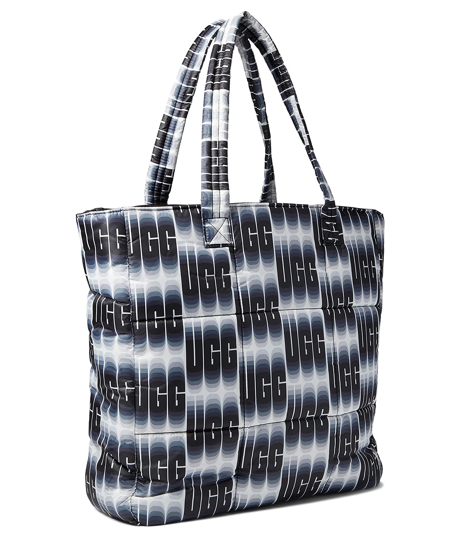 Get yourself the spacious and sleek UGG® Ellory Puff Tote handbag for compact storage. | Nylon construction. | Magnet closure. | Two top handles. | Interior back zipper pocket. | Nylon lining. | Imported.