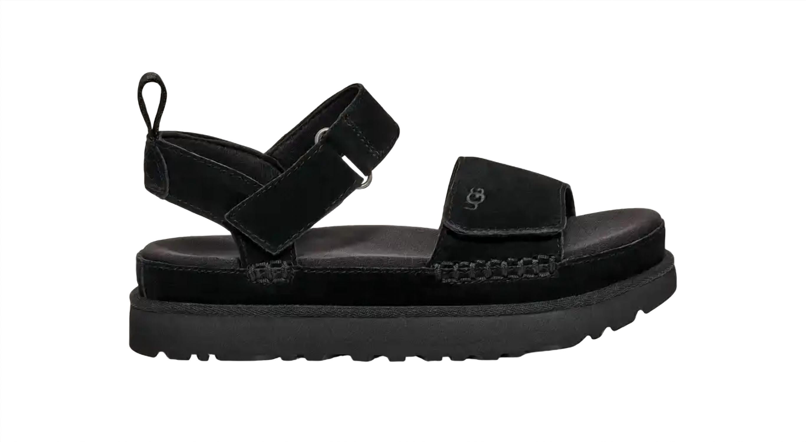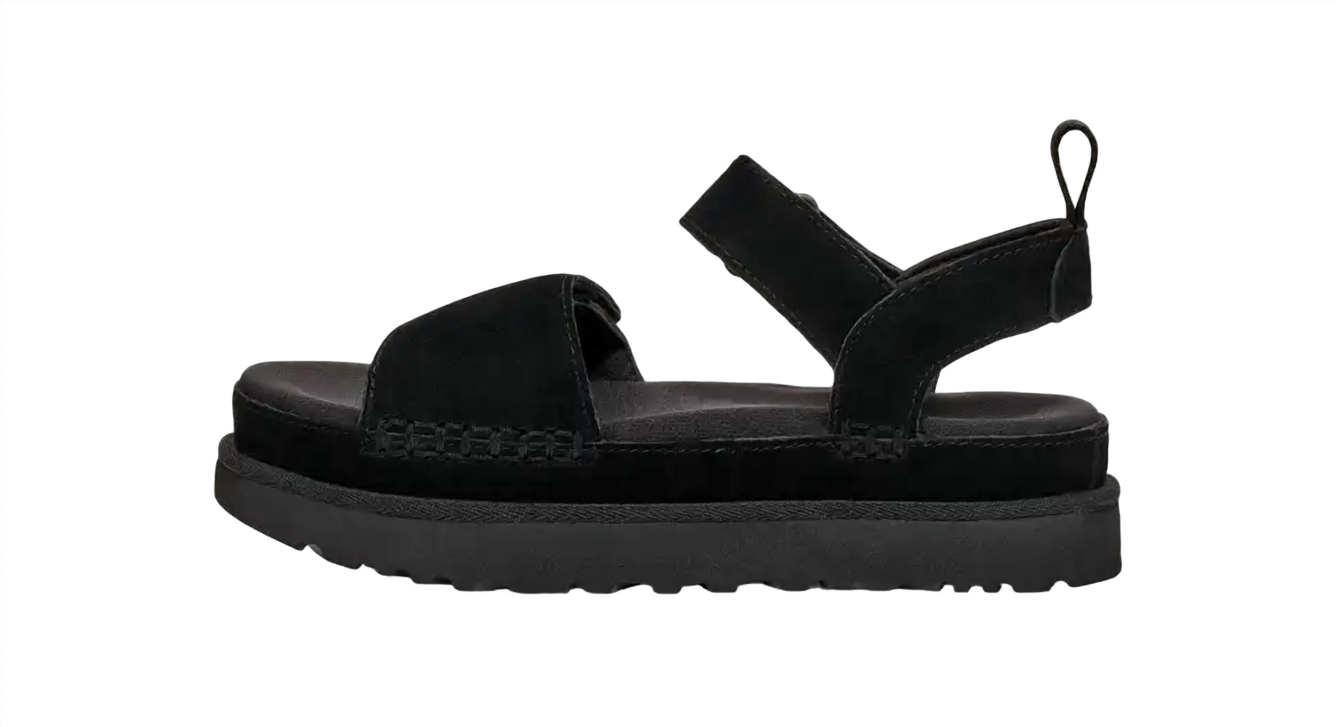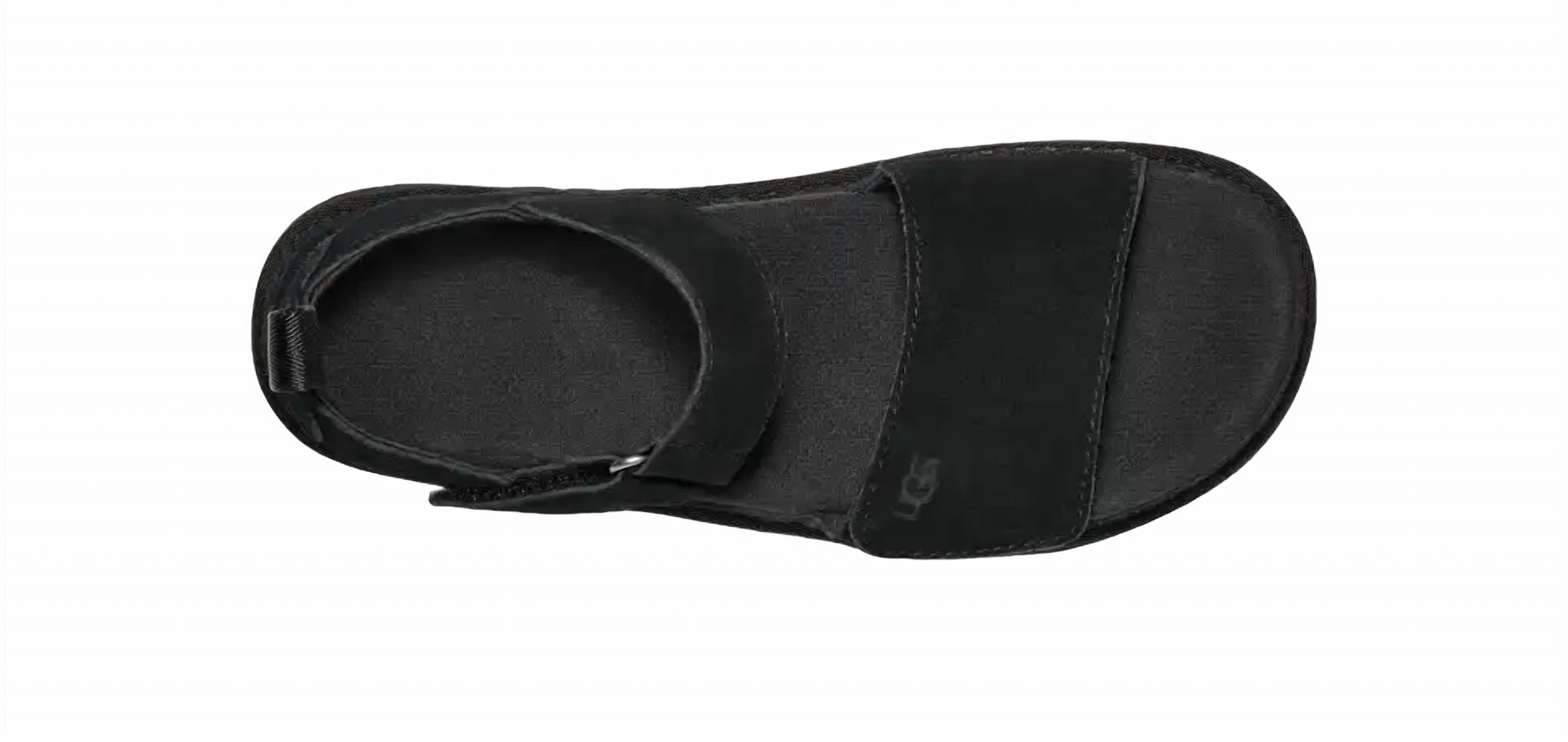 Flowy dresses, cropped pants, and even jumpsuits... this sandal works with them all! Features an adjustable ankle strap. Adjustable vamp strap. Hook-and-loop closure. Contoured EVA footbed. Suede upper. Sock liner textile made with 100% recycled polyester.