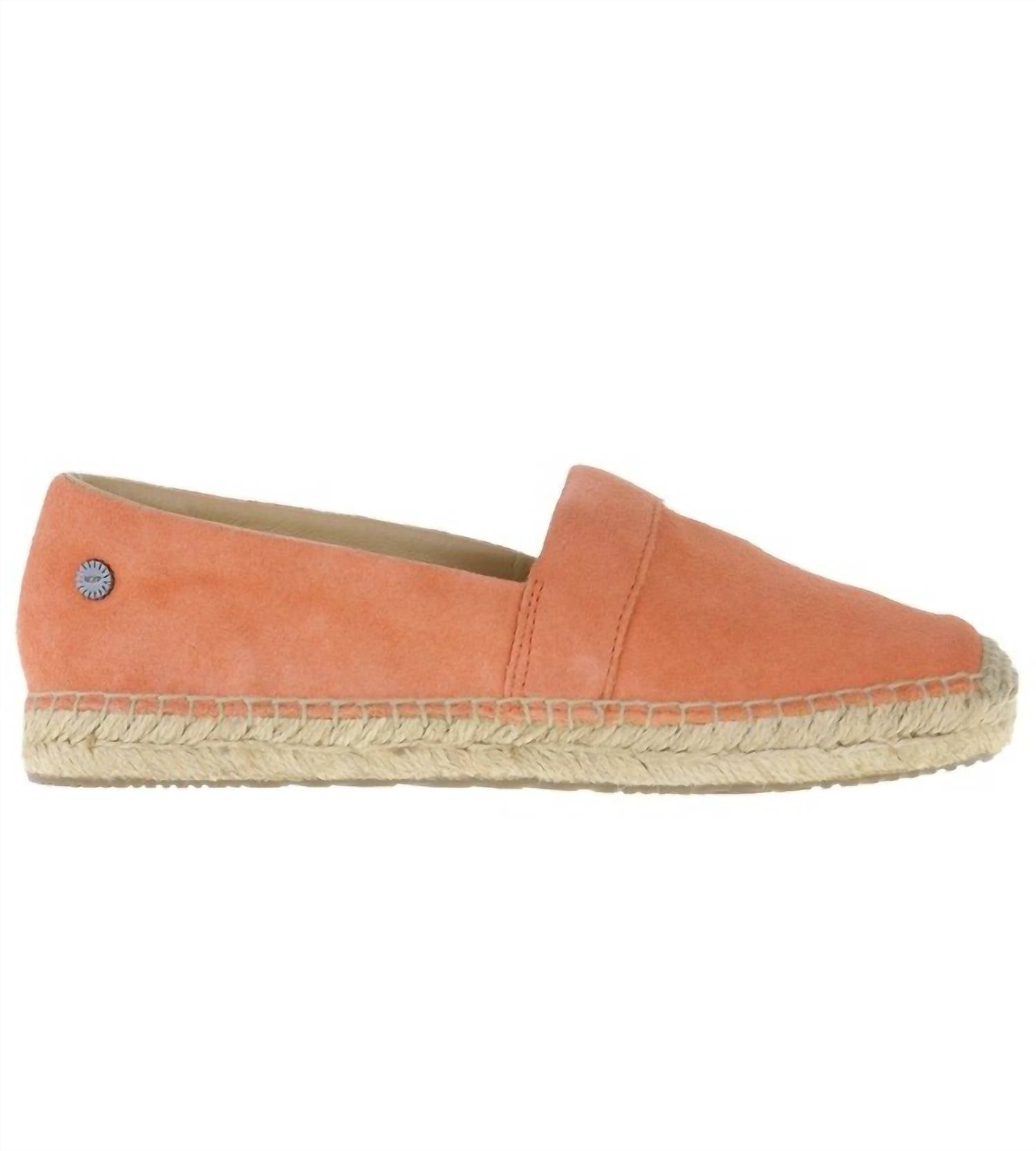 Suede. Leather lining. Sheepskin heel counter lining. Jute insole. Hand-stitched sidewall construction. Flexible molded rubber outsole. Heel Height: 0.75 inch. Weight: 0.62 lbs
