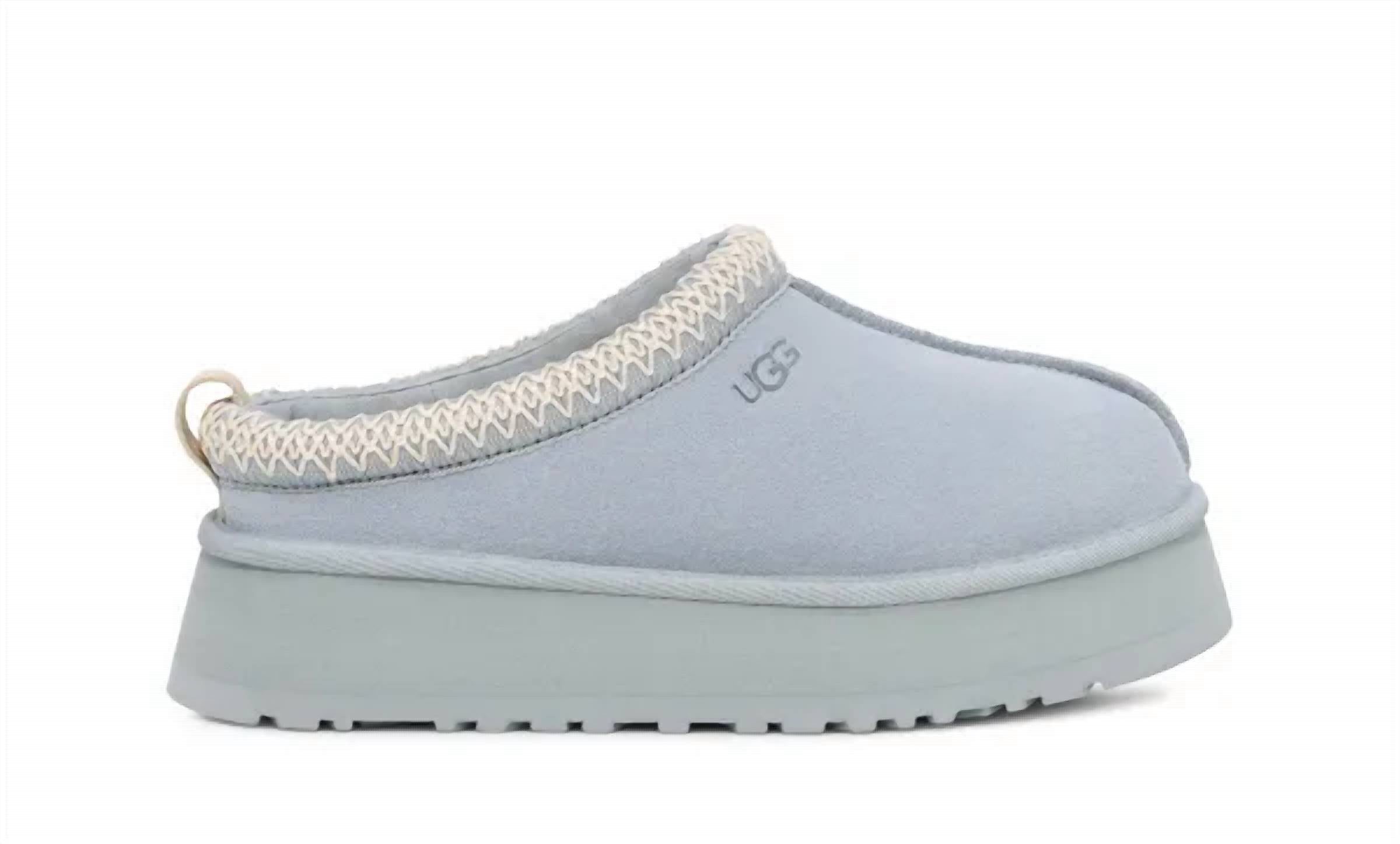 Slip into these, we promise you won't regret it. Lightweight platform? UGGbraid detail? Endless wearability? Check, check, check! Our Tazz II keeps the ease and comfort you love about our Tazz. The upper is made with smooth suede lined with plush sheepskin and the sugarcane EVA outsole has an enhanced rocker shape for effortless movement. Item No. 1174471 Suede upper UGGbraid made with 70% recycled polyester, 30% rayon 10mm sheepskin lining 10mm sheepskin insole EVA midsole Sugarcane EVA outsole Textile binding made from 100% recycled polyester fibers 1.75" platform height The UGG® Logo, heat-embossed, Woven label with The UGG® Logo on insole RN 88276 This product contains real fur from sheep or lamb. Fur may be sourced from Australia, Ireland, the United Kingdom, or the United States. It has been artificially dyed and treated.